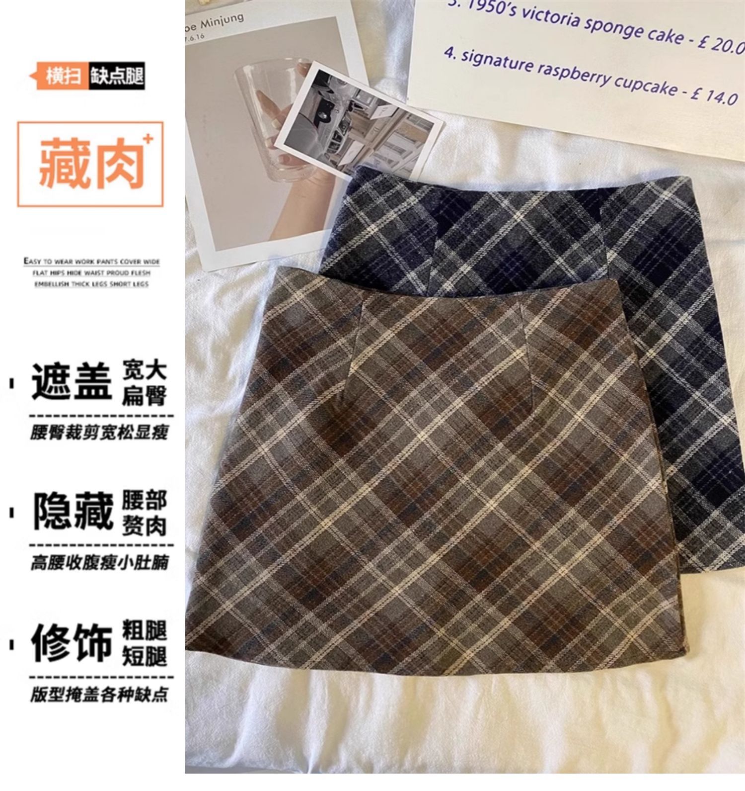レトロな格子縞の毛の半身のスカートの女性の大きいサイズの秋冬のラシャの百のしわのスカートの太っているmmは腹を遮って光のa字のショートスカートを遮ります。