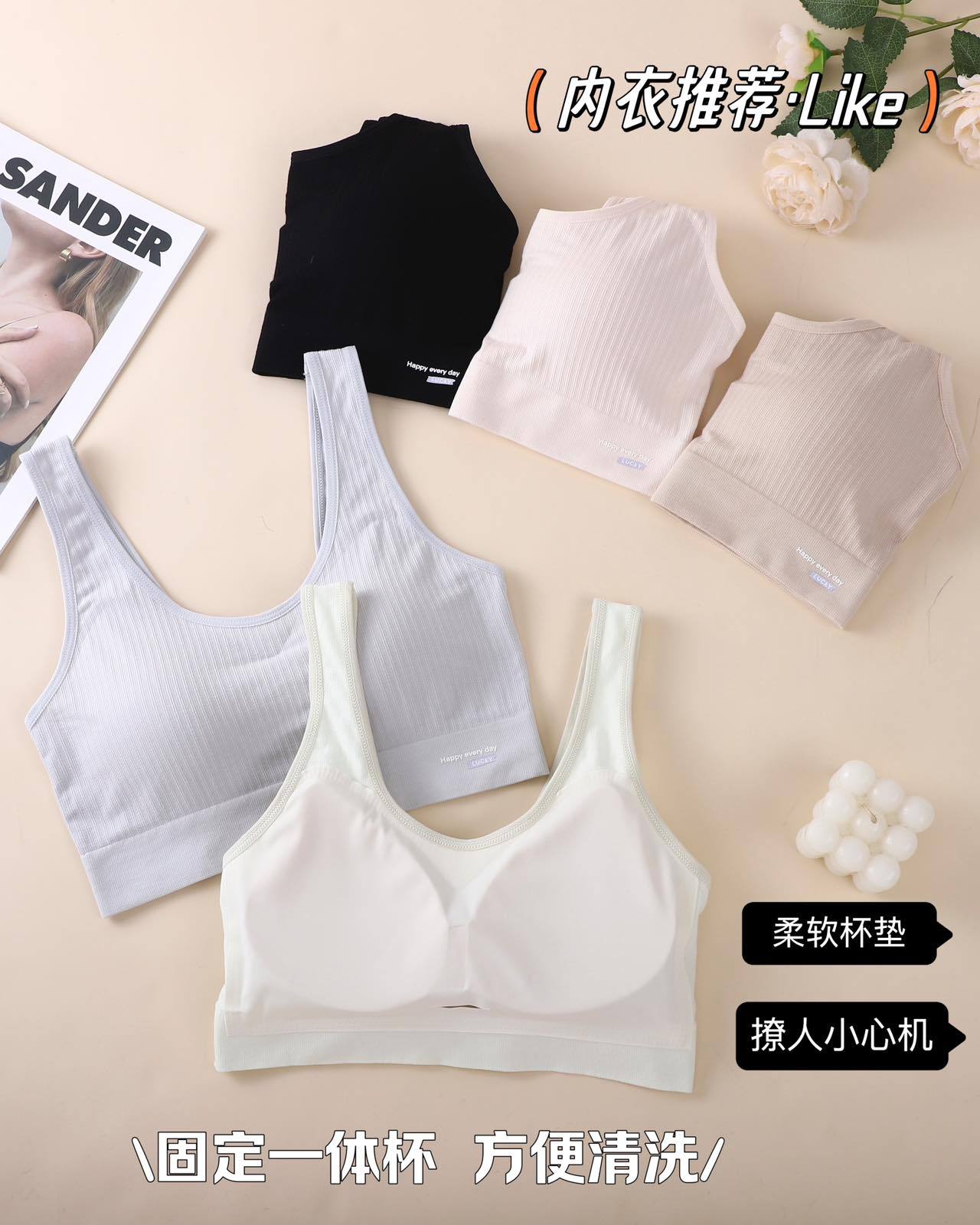 新款胸美背露背文胸内衣无钢圈一体式吊带背心胸垫打底内搭裹胸女