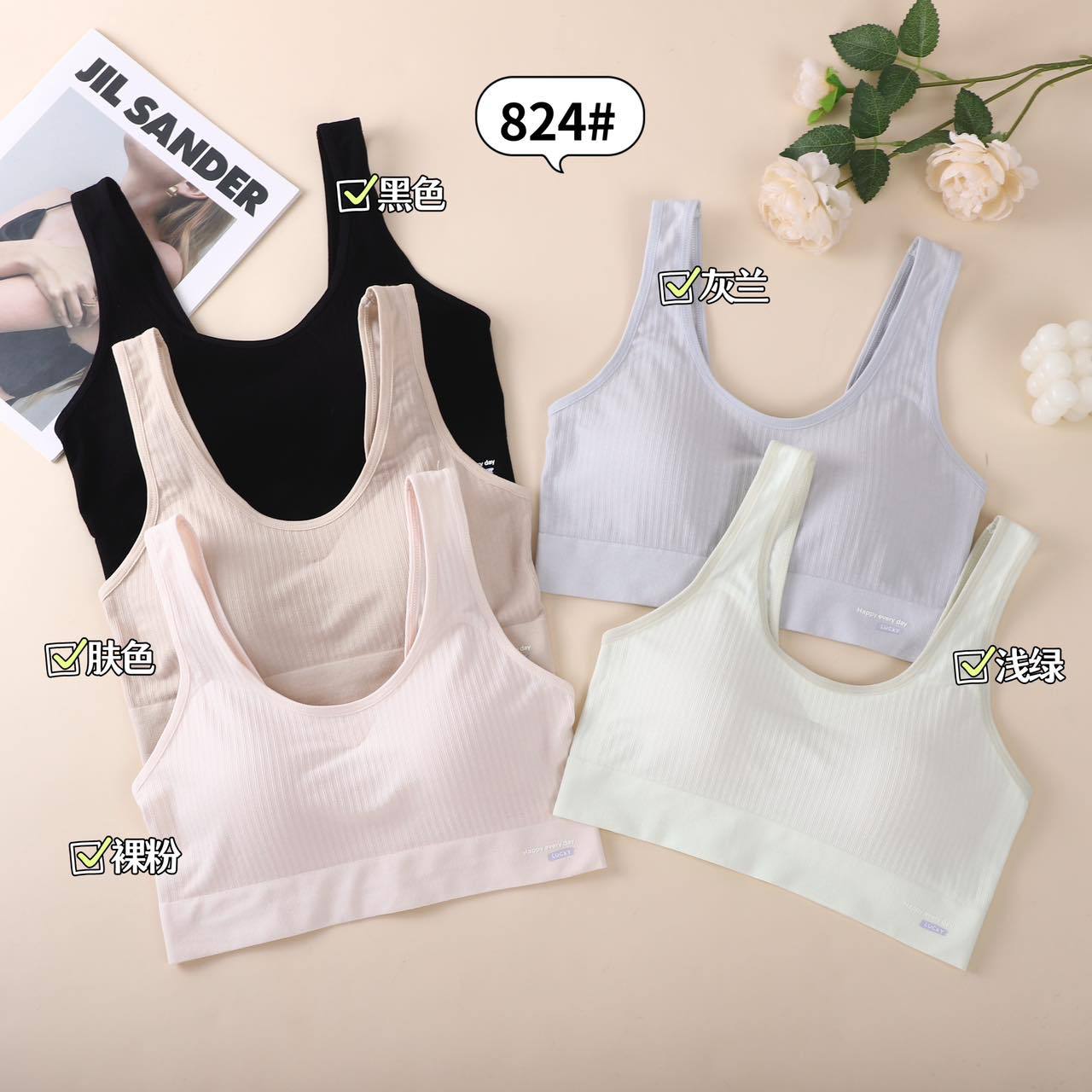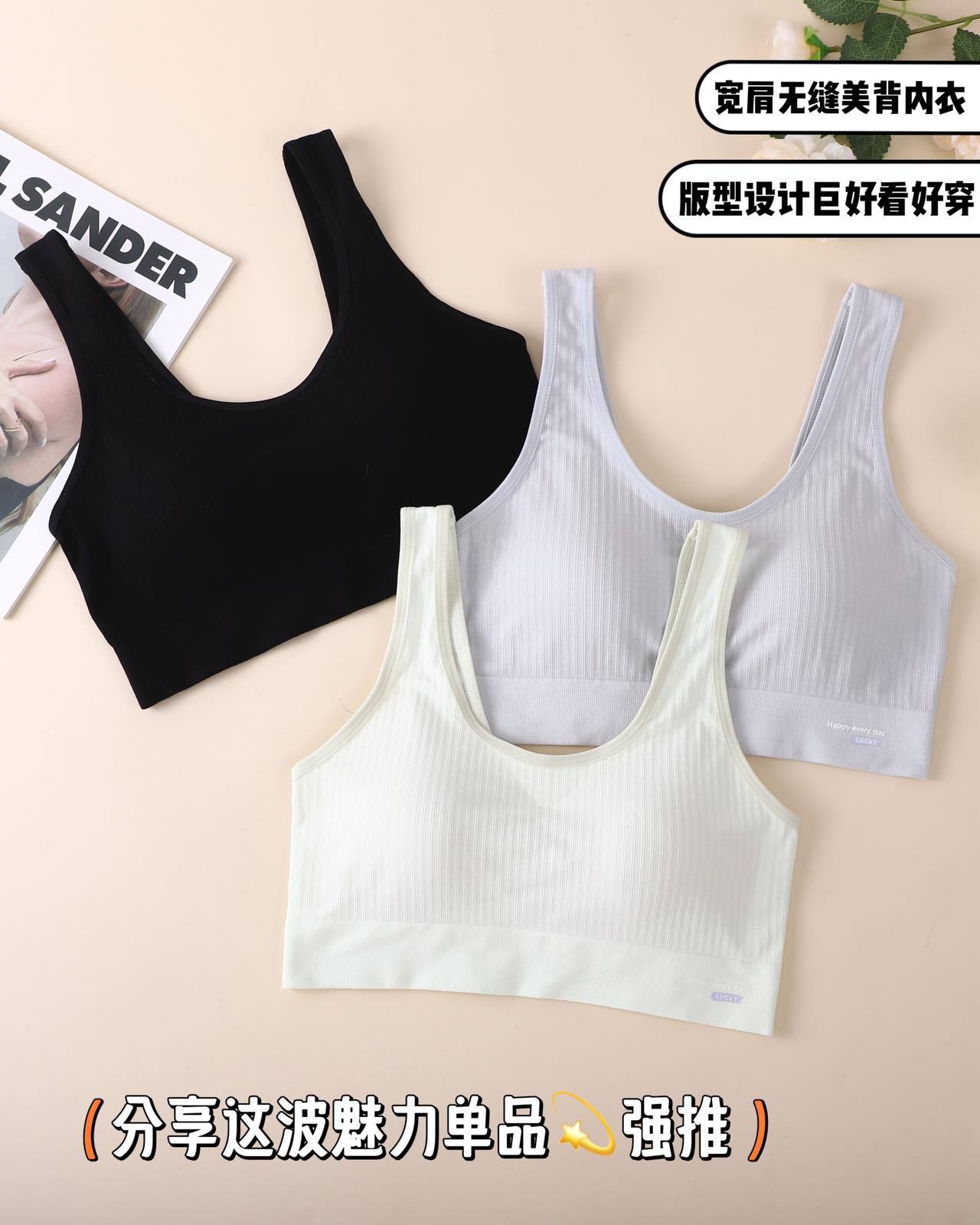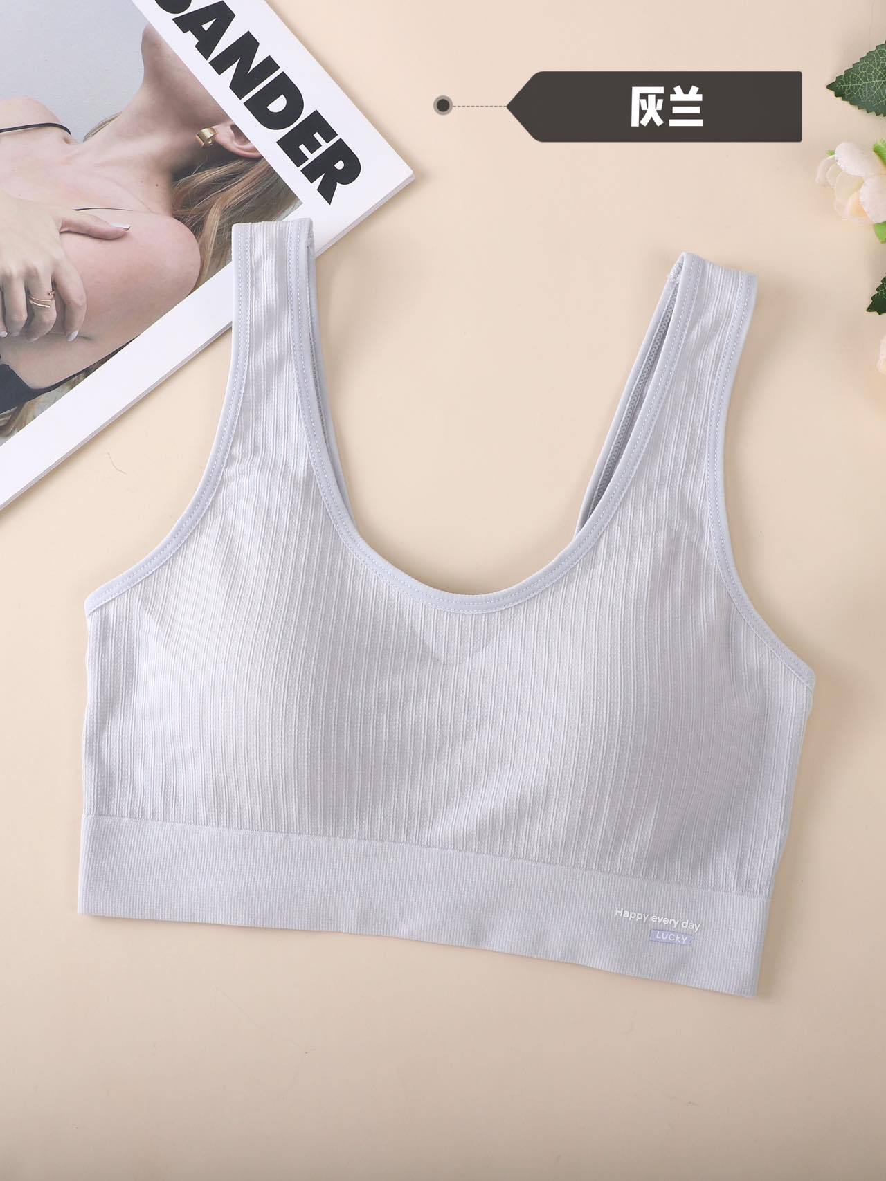 817 # 新型アルファベットベストファッション運動無痕無鋼輪上着少女は底を打って胸パッドを着ることができて快適である