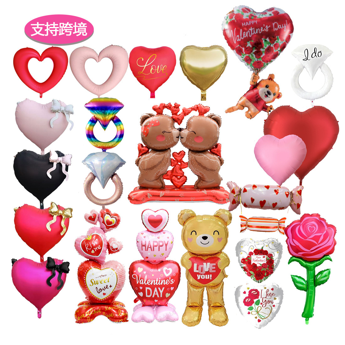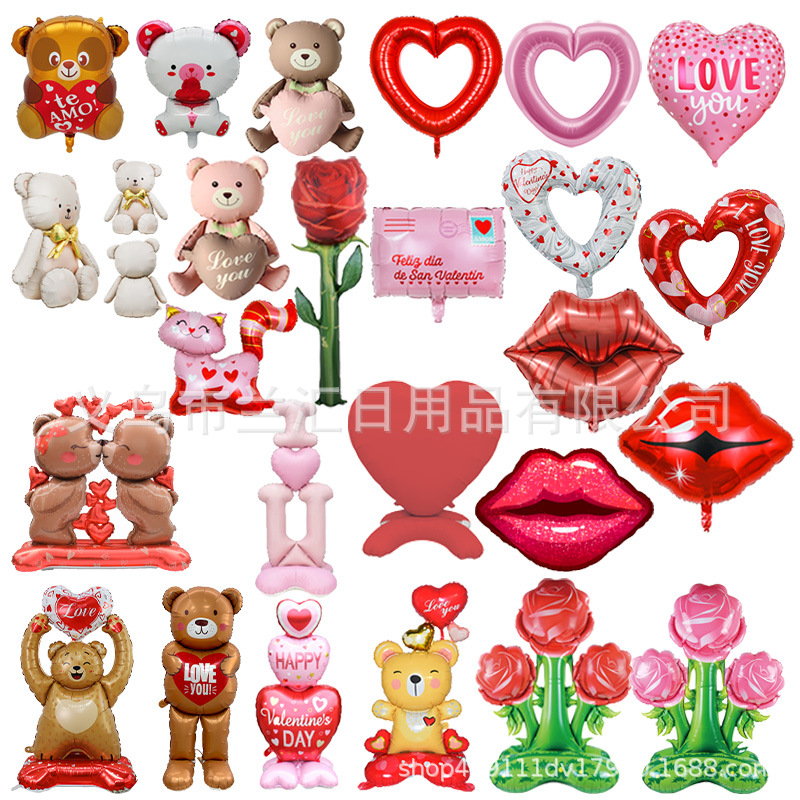 国境を越えた新しいバレンタインデーのアルミ膜風船愛熊唇ラブレターバラの告白シーンに風船を配置する