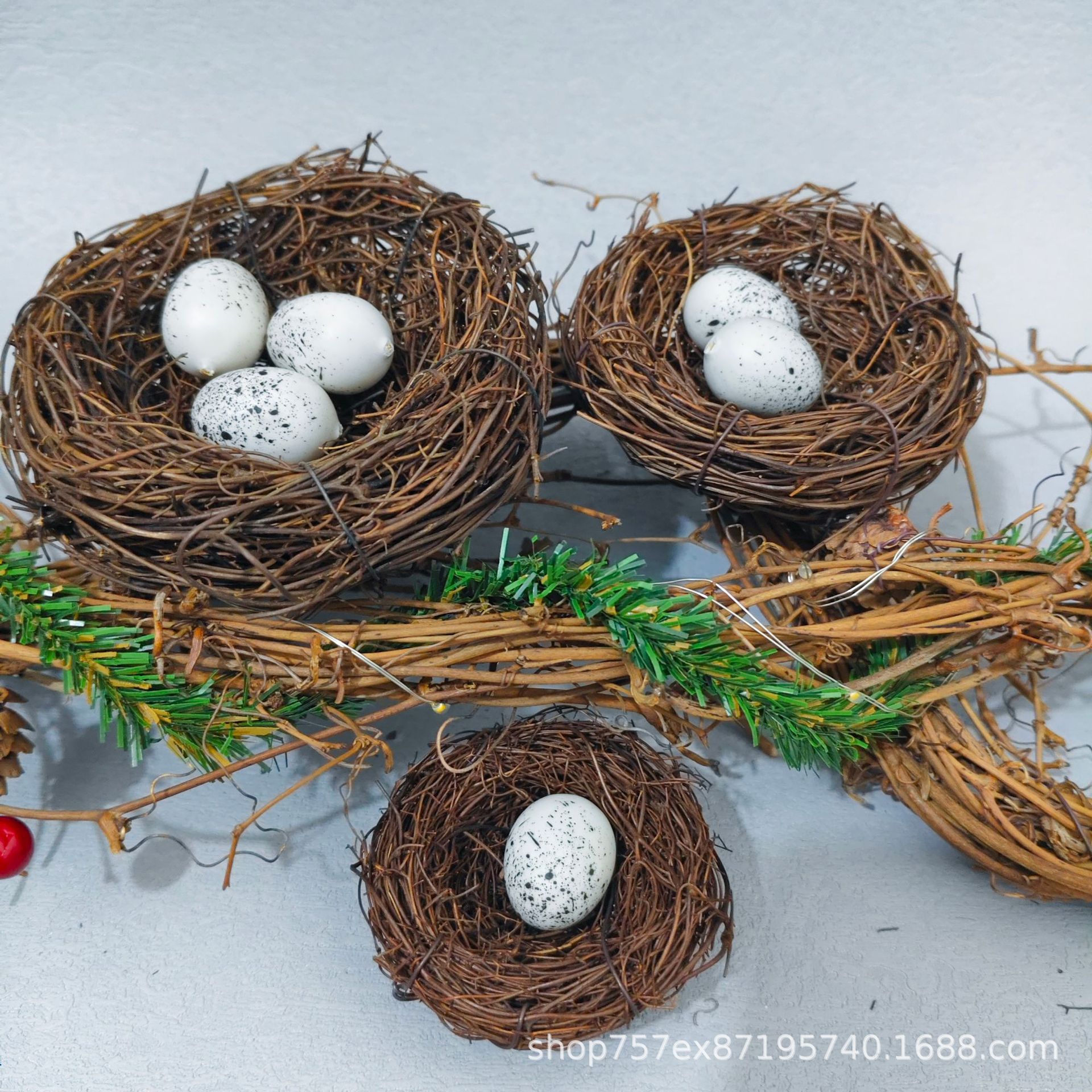 シミュレーション藤編鳥の巣小鳥ヒキガエル藤鳥の巣装飾イースター用品軟装道具ショーウインドーに鳥の卵を飾る