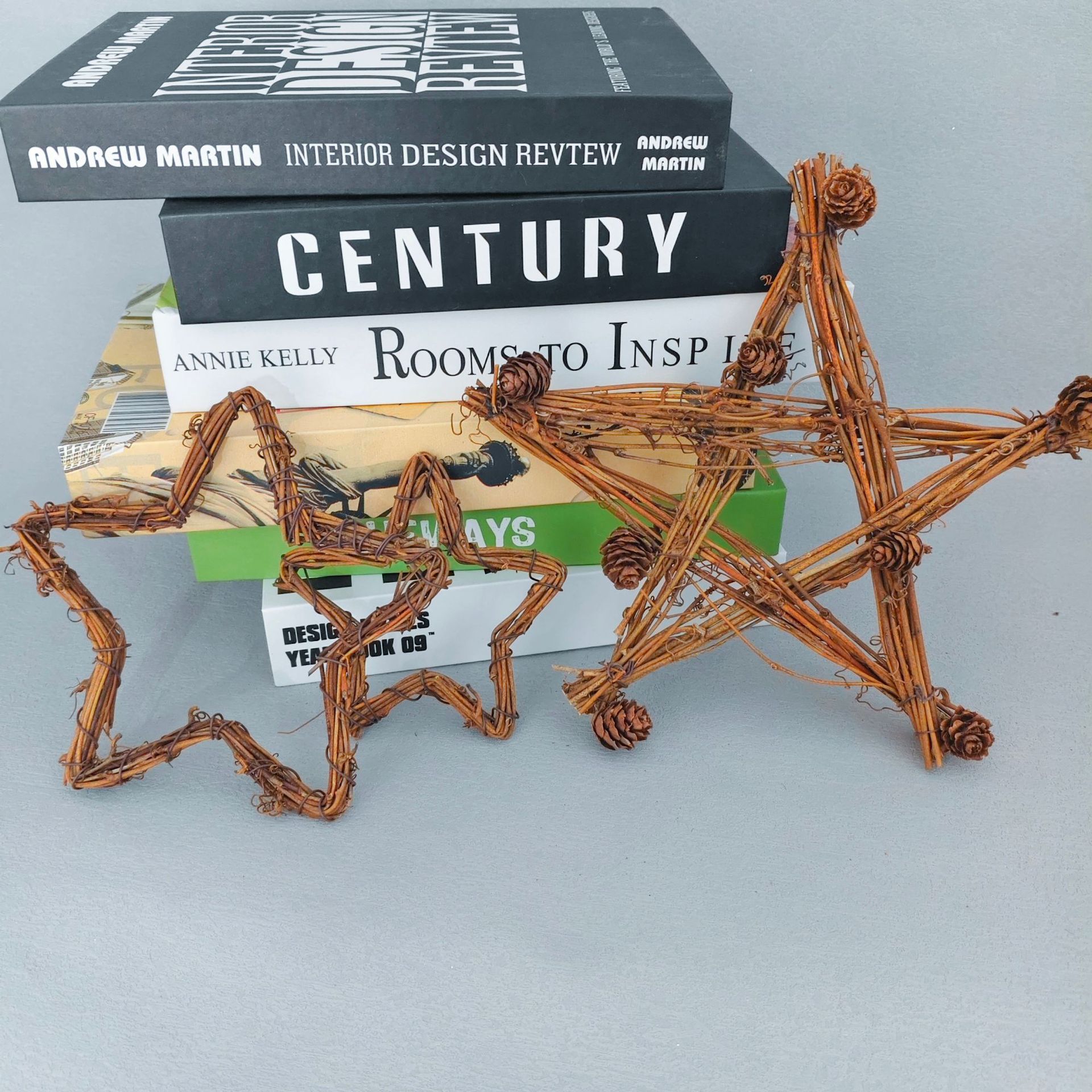 籐編み五芒星森系田舎田園風結婚式クリスマス籐編み花輪ドライフラワー永生花ペンダント