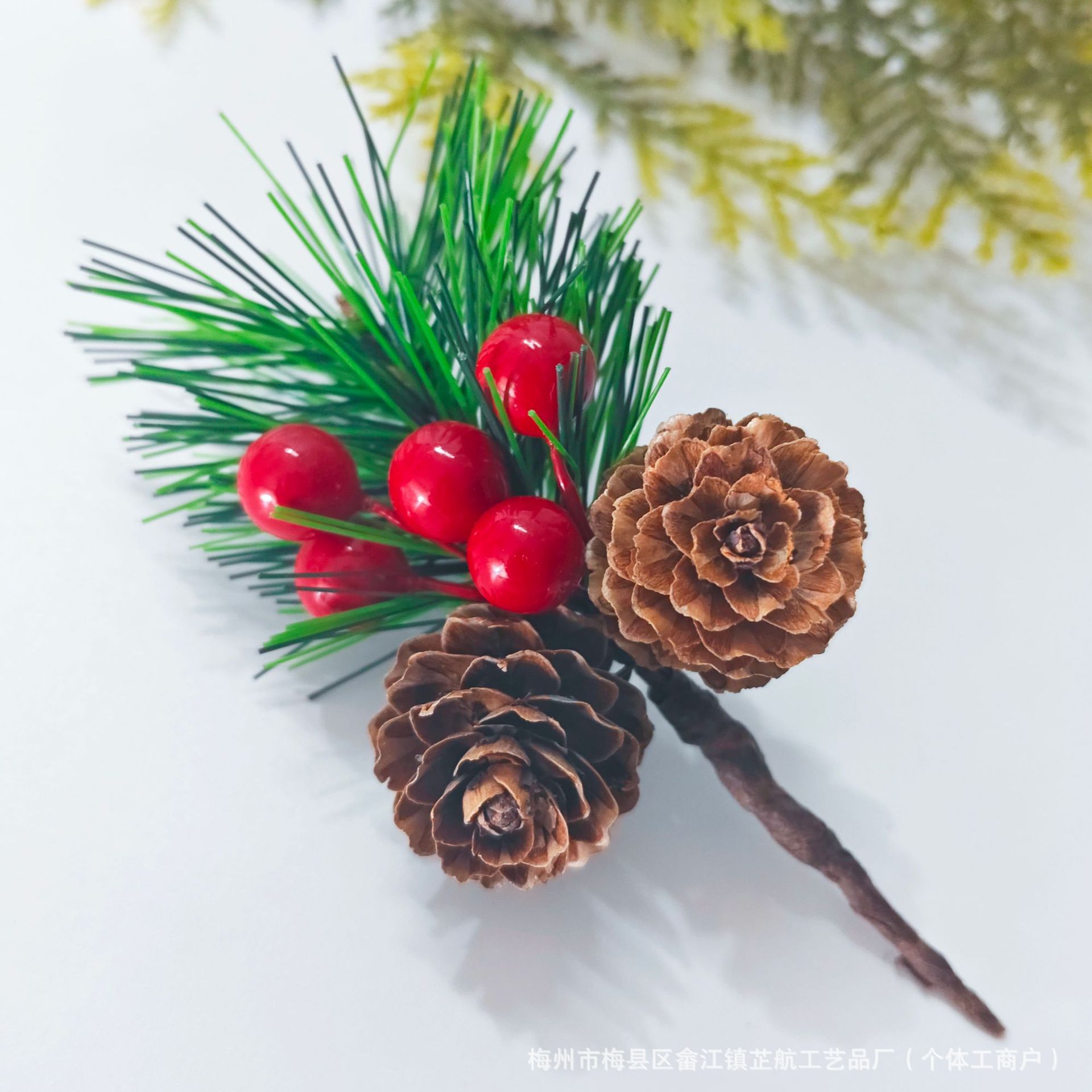 クロスボーダー松果アクセサリーシミュレーション松針挿し木紅果ミニ天然松果クリスマスDIYアクセサリー花枝
