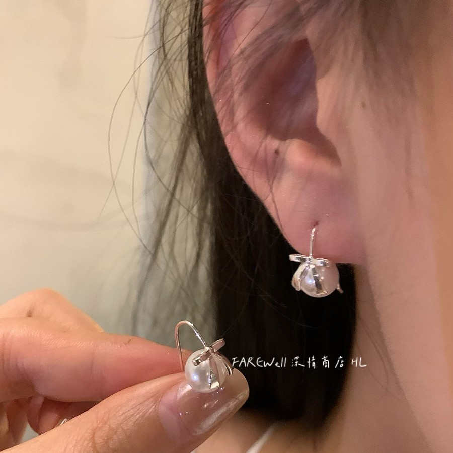 925銀ins冷淡な風気質復古日韓アクセサリー真珠誇張百合クラシックイヤリング女性ピアス卸売り