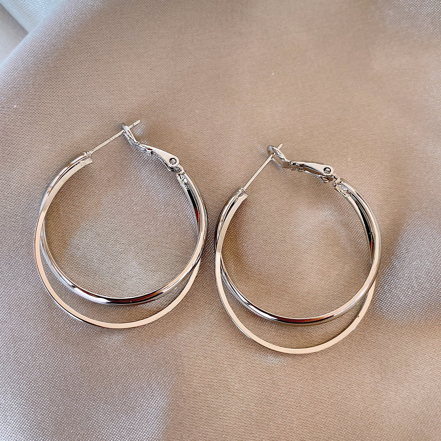 2026新款金属双层圈圈耳圈耳环女圆圈独特夸张耳钉方圆脸精致耳饰