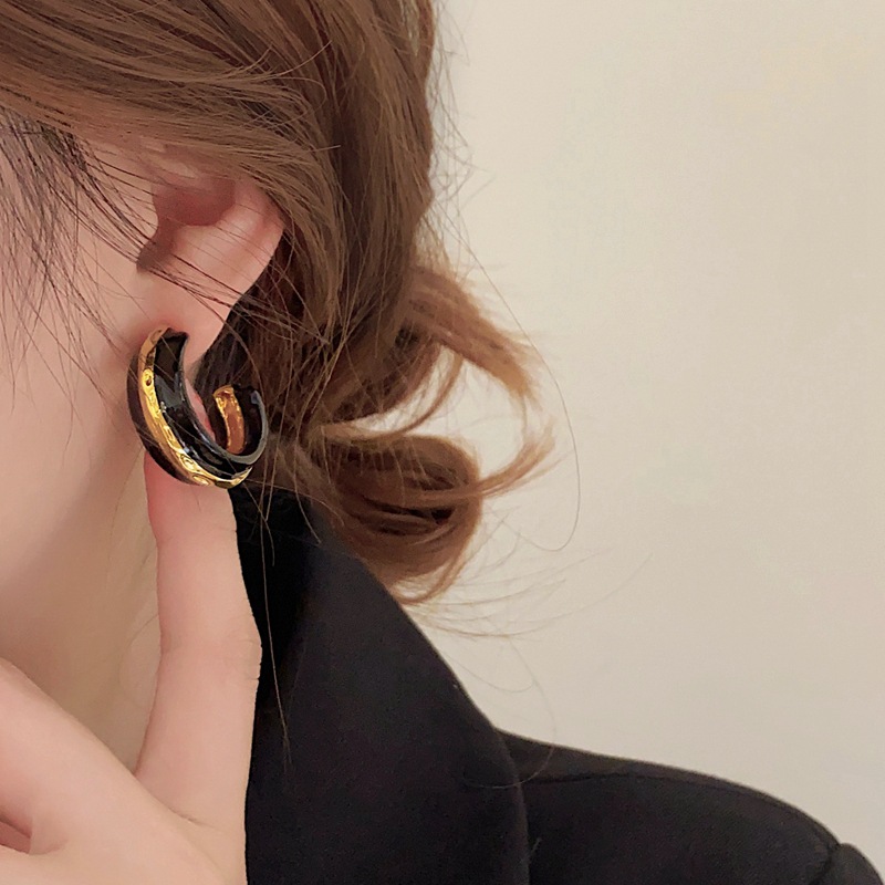 黒金は金属にぶつかってシンプルなc型の耳輪のネットの赤い復古の気質の高級感のイヤリングの耳飾りの潮の欧米の爆発的な女性にぶつかります。