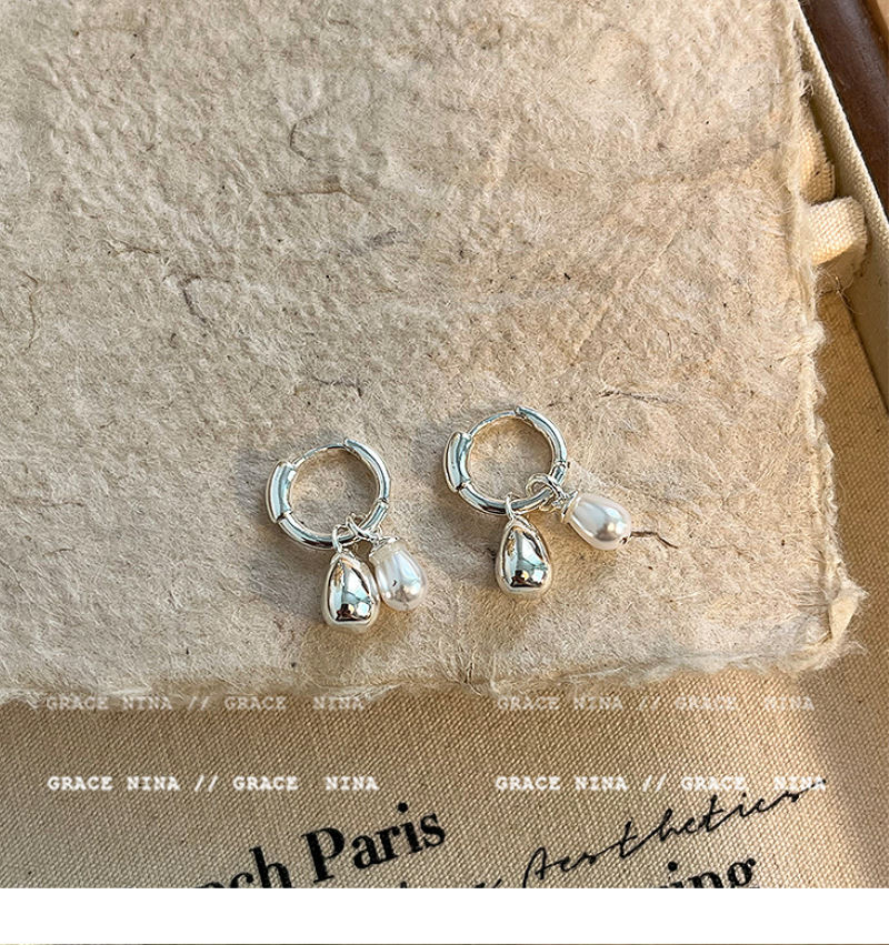 フランスのレトロな金属の幾何学は糸の真珠のペンダントのイヤリングを引っ張ります。