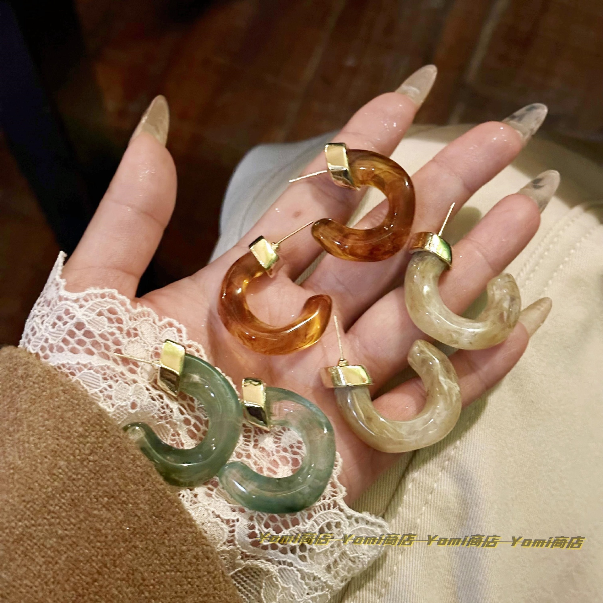 高級感ねじり三色C形樹脂耳輪小衆独特イヤリングファッション軽豪華耳飾り女性誇張耳飾り