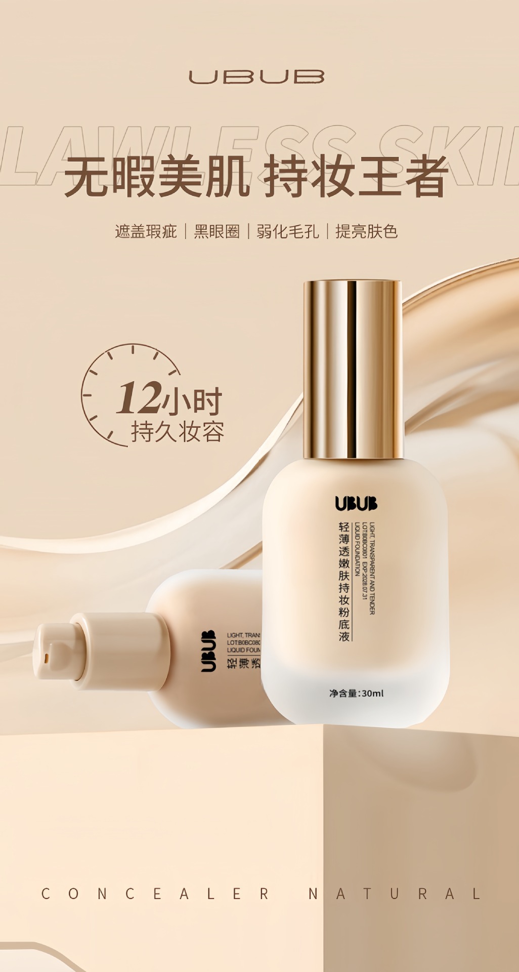 UBUBファンデーションは油の皮を混ぜて化粧を潤します。