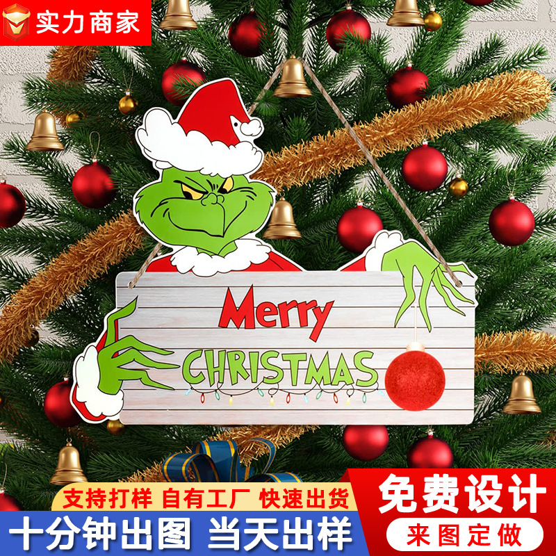 クロスボーダー爆金クリスマス木製表札ペンダント創意グリーン奇装飾看板祝日パーティー装飾品
