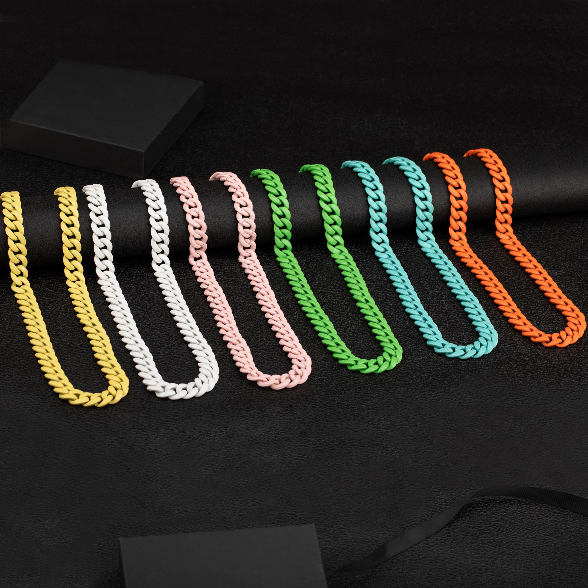 欧米の個性的なマカロンカラーのキューバチェーンの小さい大衆のデザイン感のネックレスの女性のファッションの潮流の男性の鎖の骨のチェーンの現物