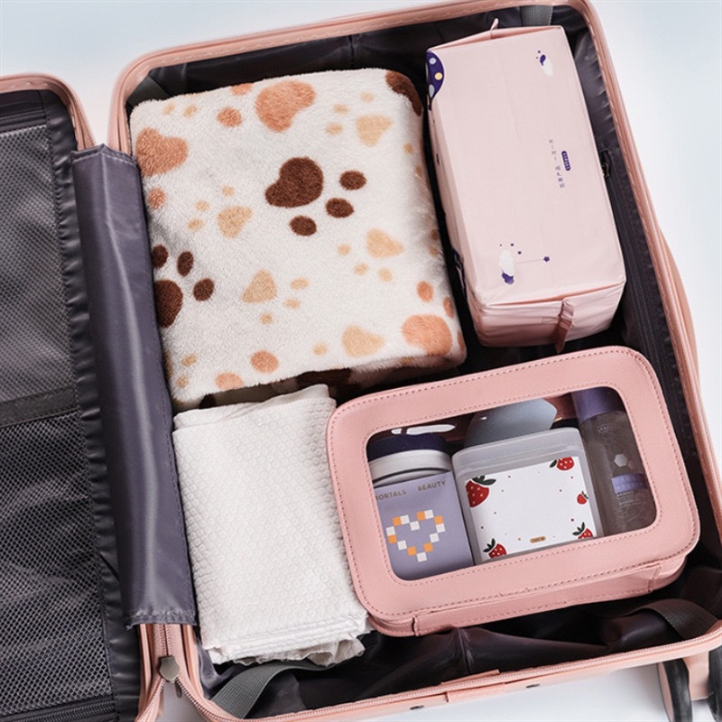 国境を越えた欧米の人気化粧品収納バッグ旅行大容量PU皮革透明化粧品収納バッグ