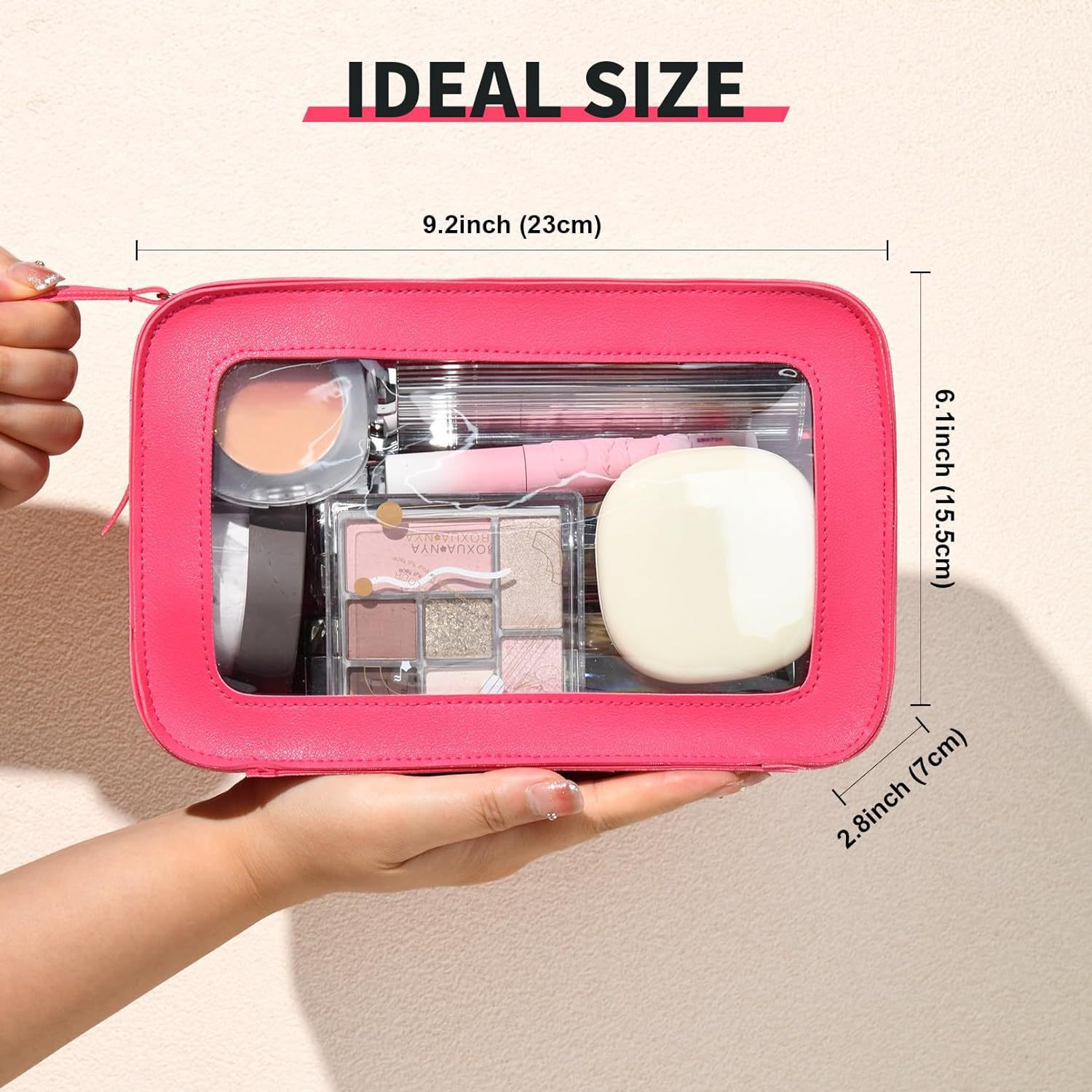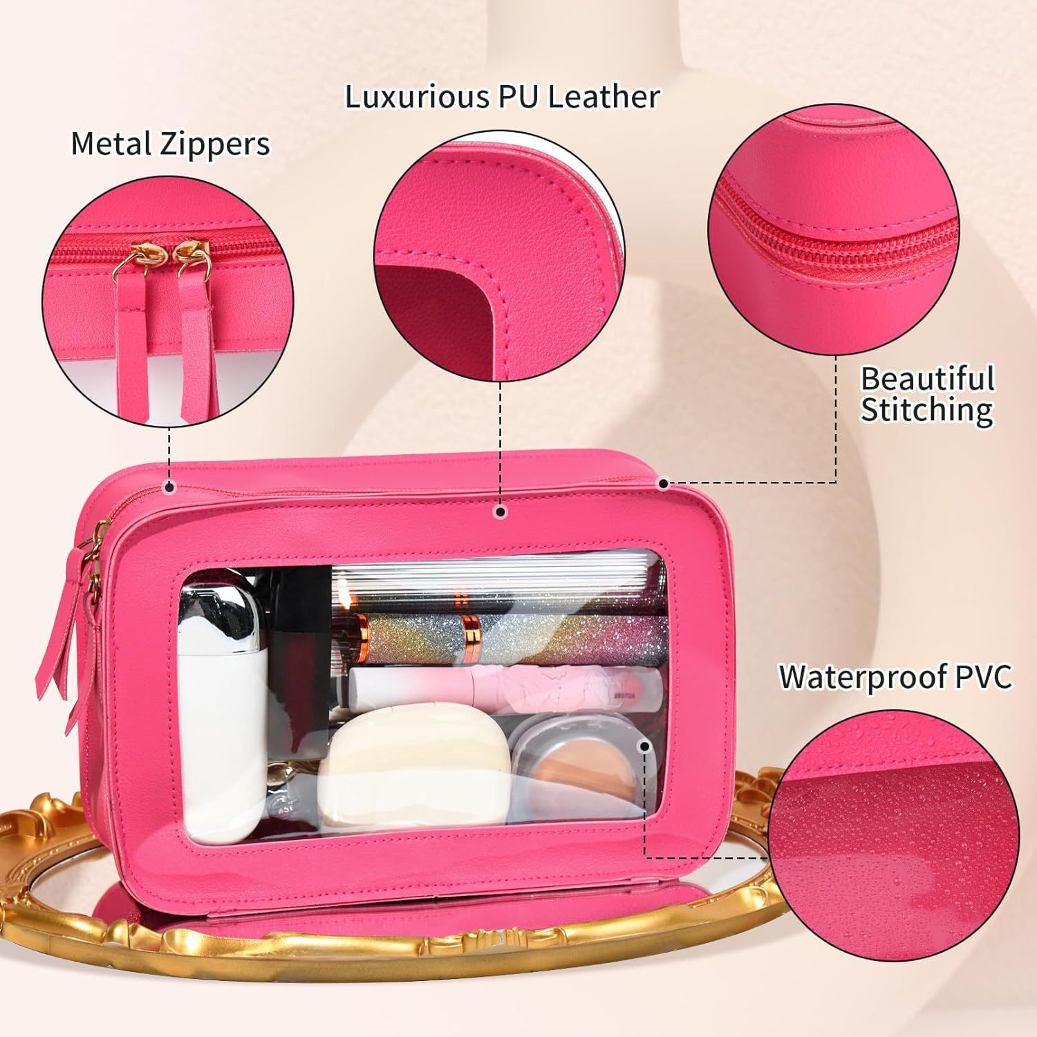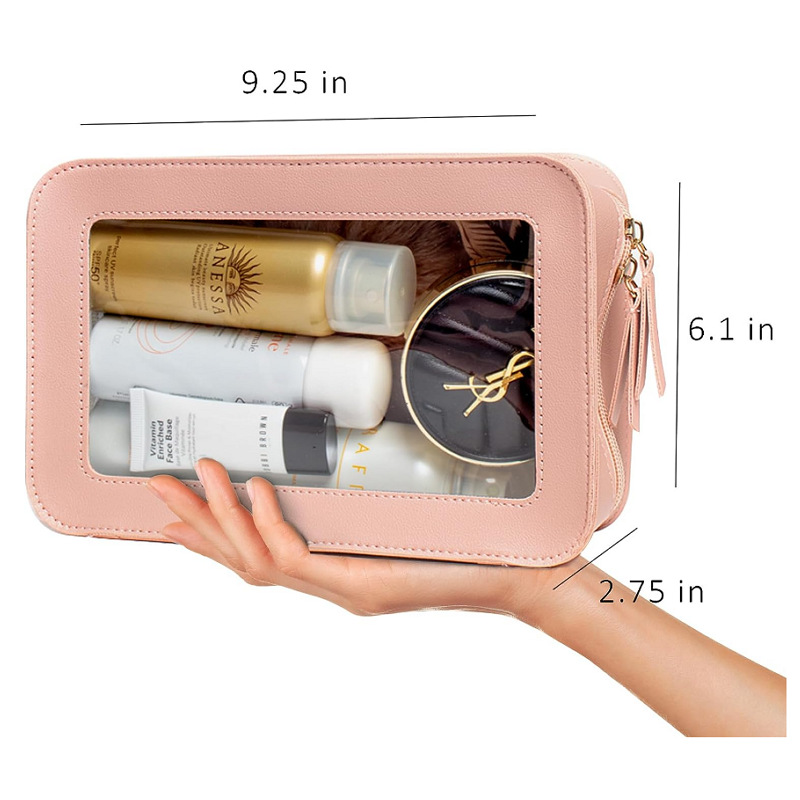 Amazon新品旅行ポータブルレザー防水透明洗面バッグ大容量化粧ブラシスキンケア用品収納バッグ