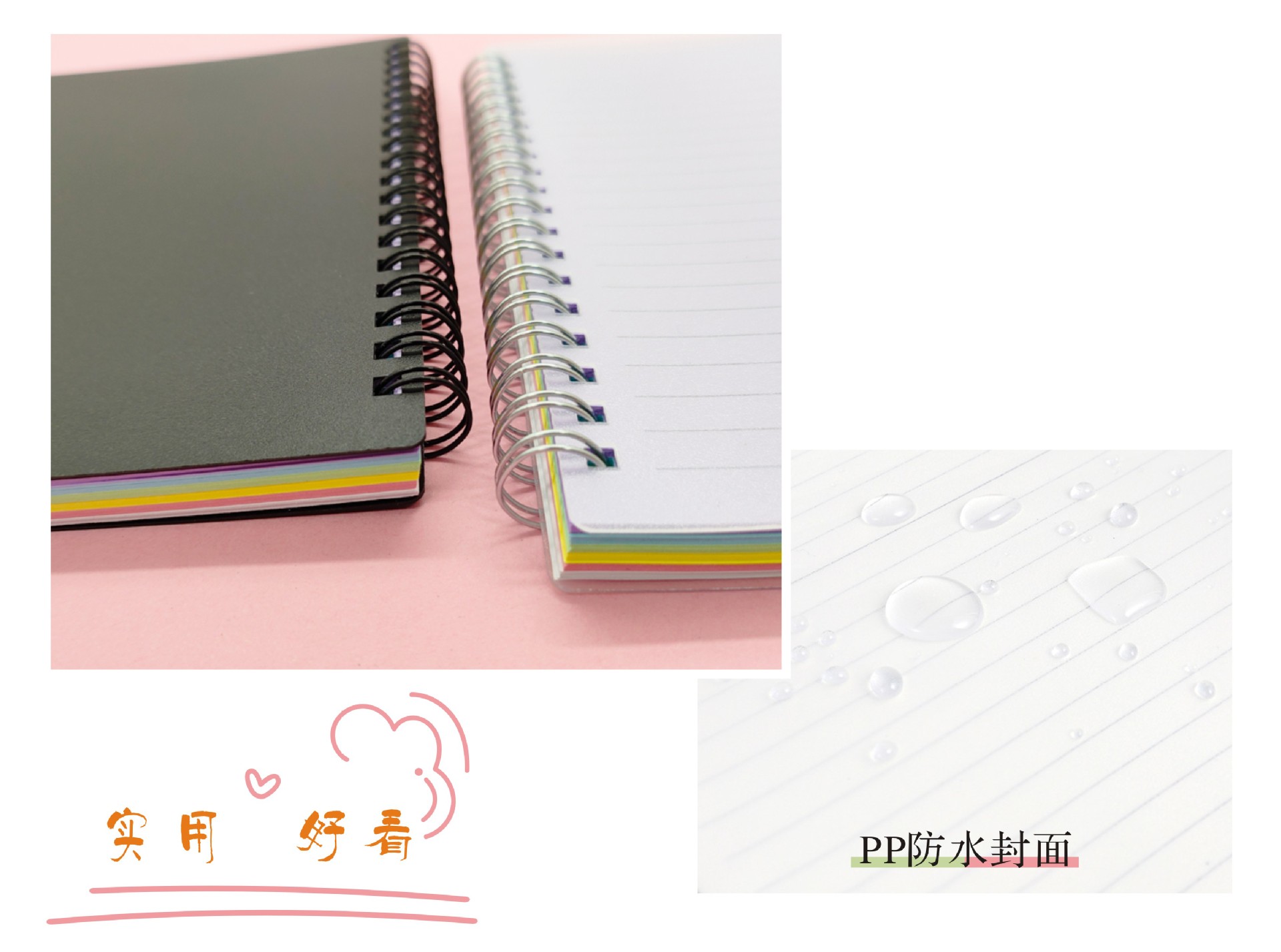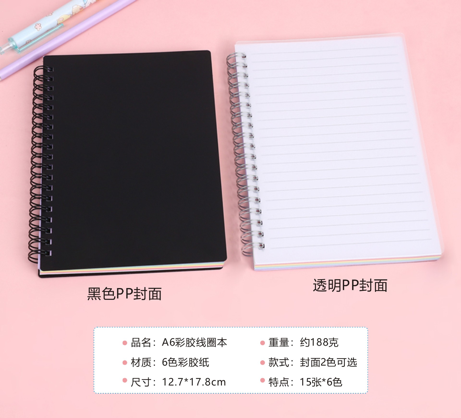 B6コイル本クロスボーダーpp表紙シンプル6色テープ厚手学生メモ帳事務用品ノート