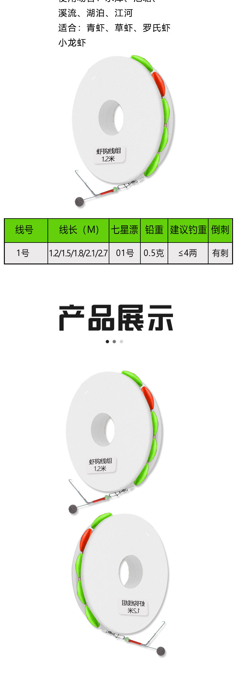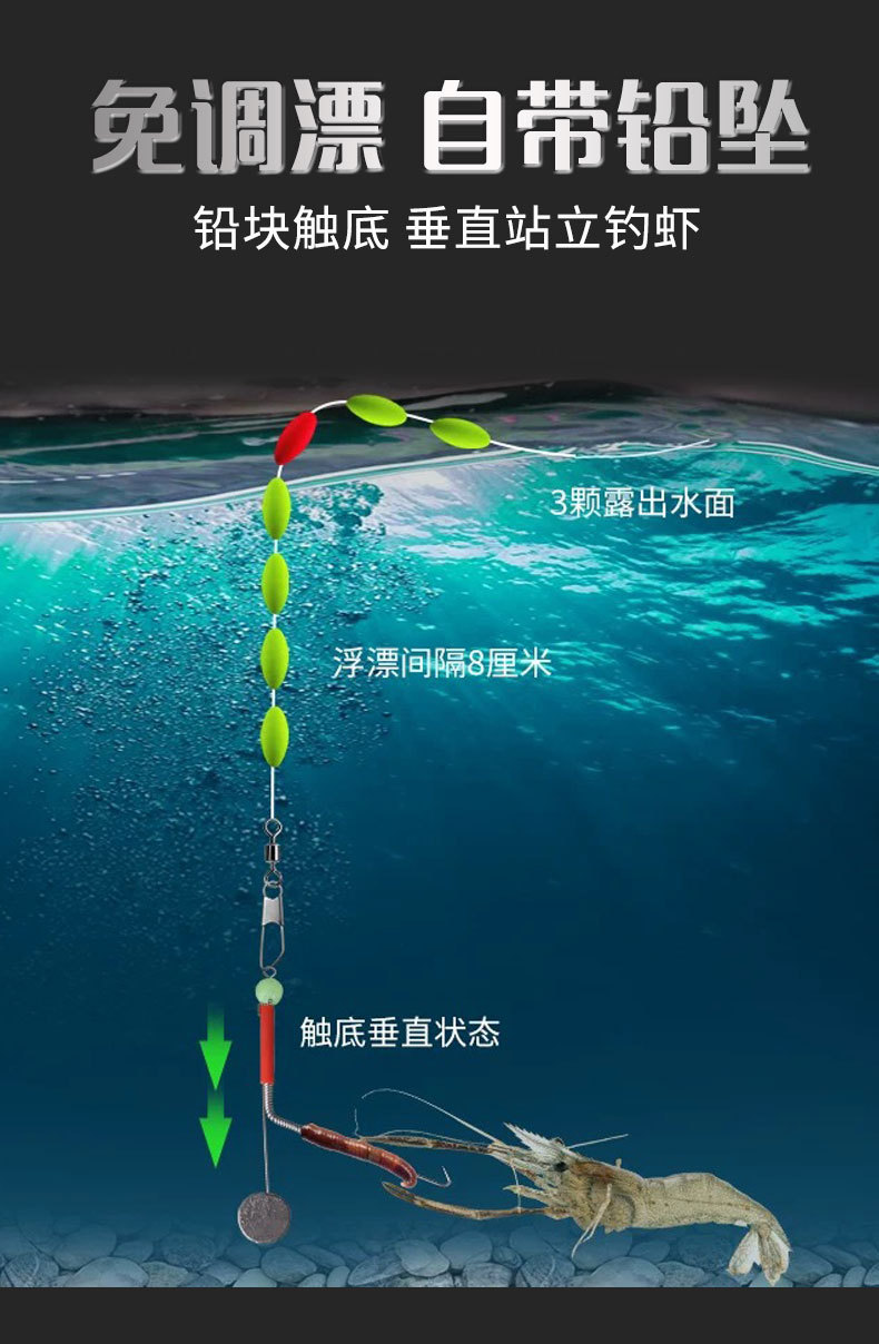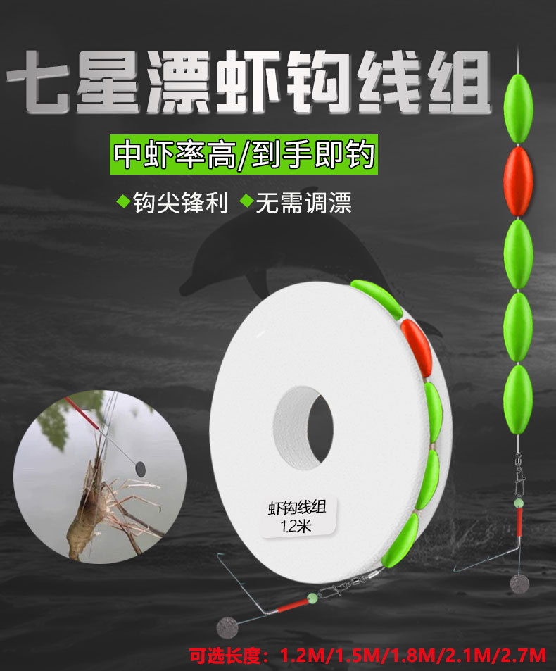 七つ星浮きエビフックラインセットにはトゲが付いています,スターフローティングシュリンプフックラインセットトゲなし