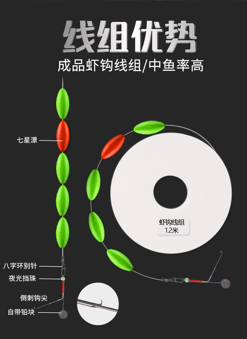 朝天フック七星漂着セット高感度穿管金海夕朝天フック蛍光伝統釣りフナ浮き