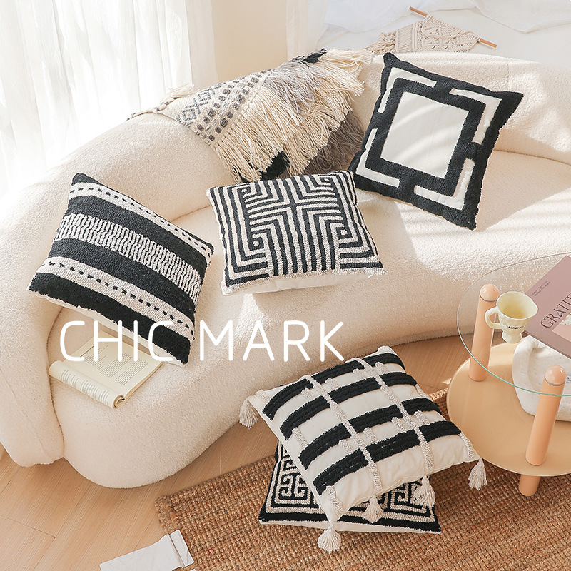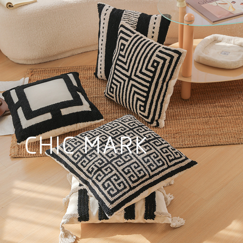 蔓臻高級白黒色織ジャカード枕抱き枕シンプルリビングクッション