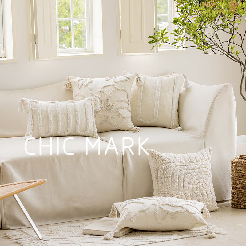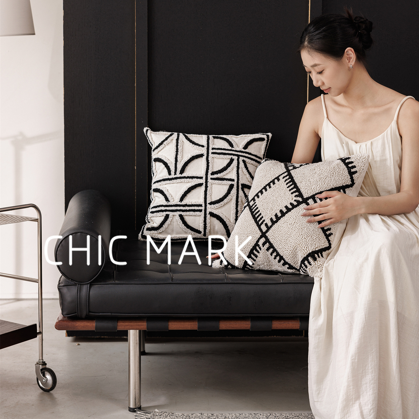 侘寂风抱枕黑白色系棉麻圈绒绣花民宿样板房高级感客厅沙发靠枕