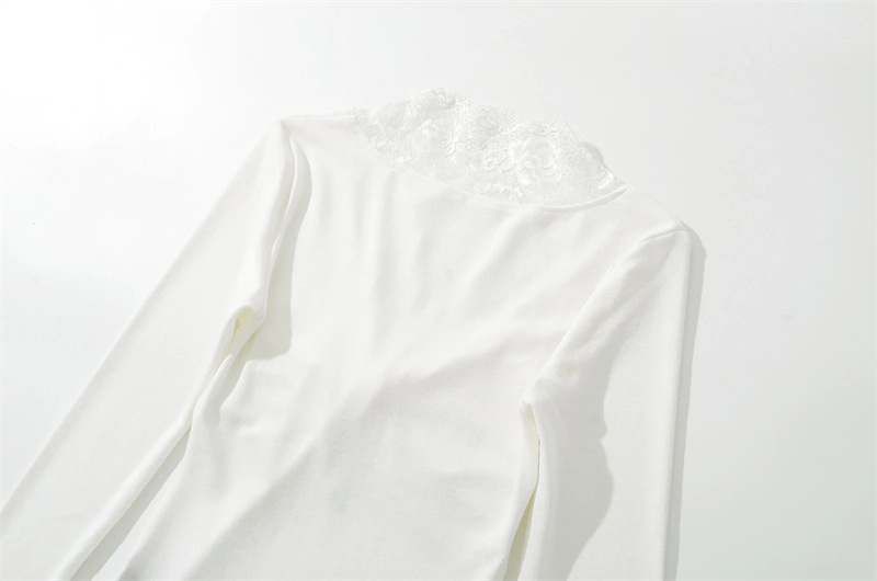 纯欲风拼接蕾丝边低U领长袖T恤女春秋季辣妹修身设计感假两件上衣