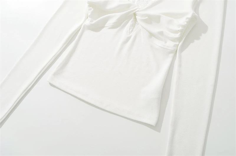 蕾丝拼接假两件长袖T恤女2025秋季新款辣妹设计感V领扭结修身上衣