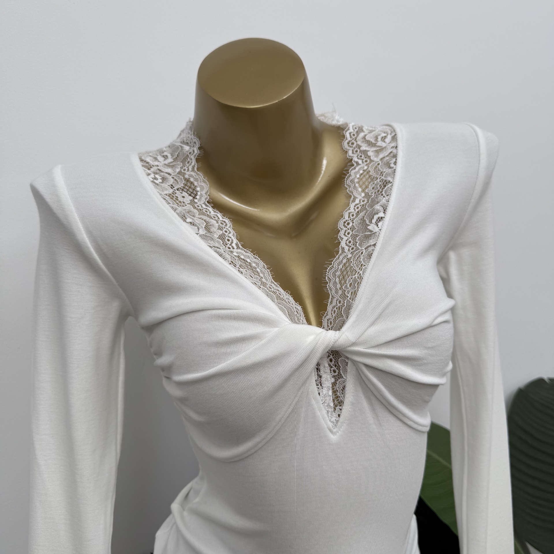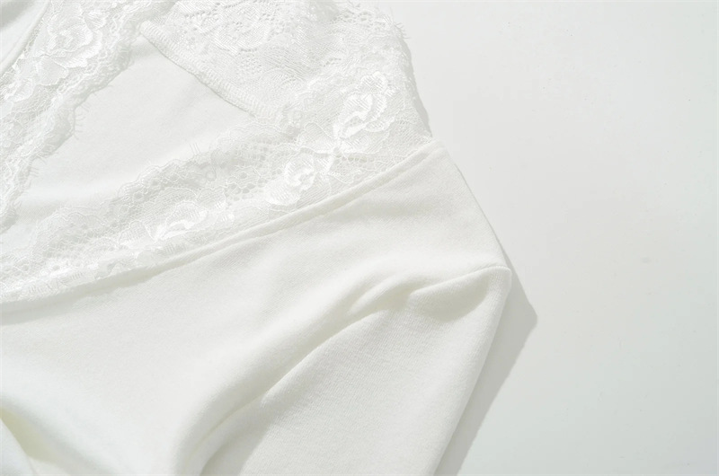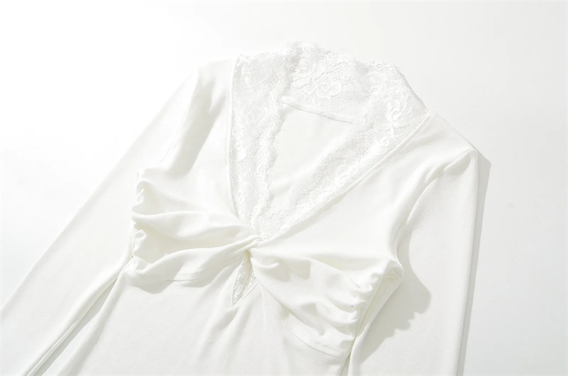 甘辛い純欲風レースvネック長袖tシャツ女性2025春の新型修身はやせています。