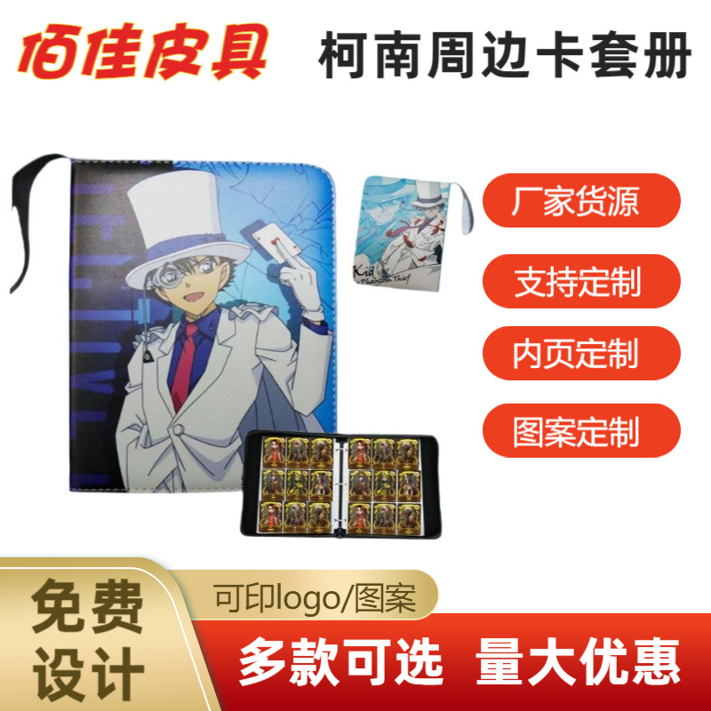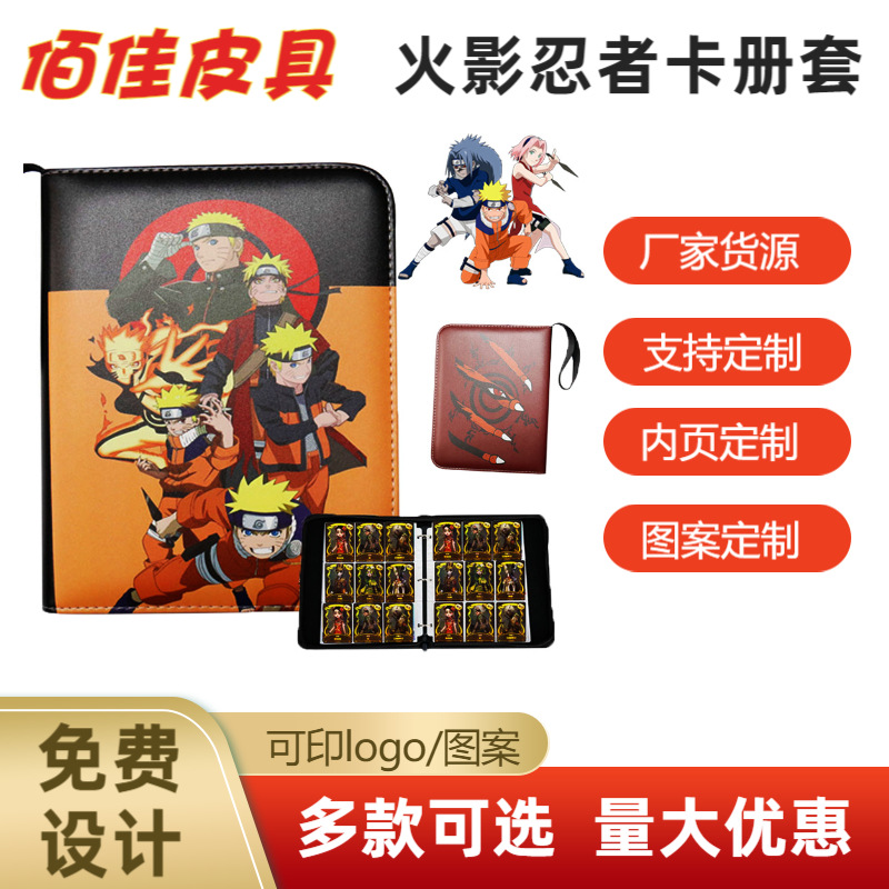 新商品の火影忍者カードの収納冊の皮質のファスナーの金の収集冊の9宮格の大容量のアニメの収集カードの冊