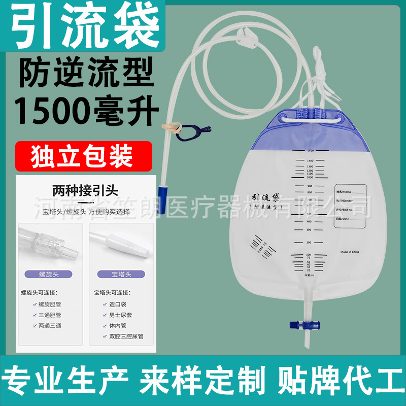 排水袋1500ミリリットル逆流防止尿袋使い捨てカテーテル老人寝たきり尿袋