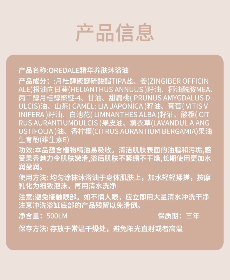 OREDALEエッセンス肌を養う入浴油保湿乾燥肌は肌を潤し、肌を潤し、肌を荒くし、潤いを改善します。