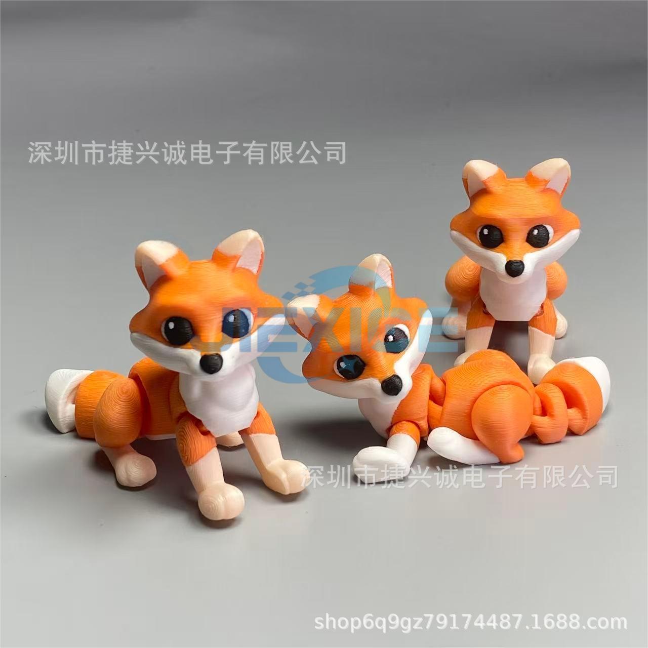 跨境爆款3D打印迷你小狐狸关节可活动模型小动物手办儿童玩具装饰