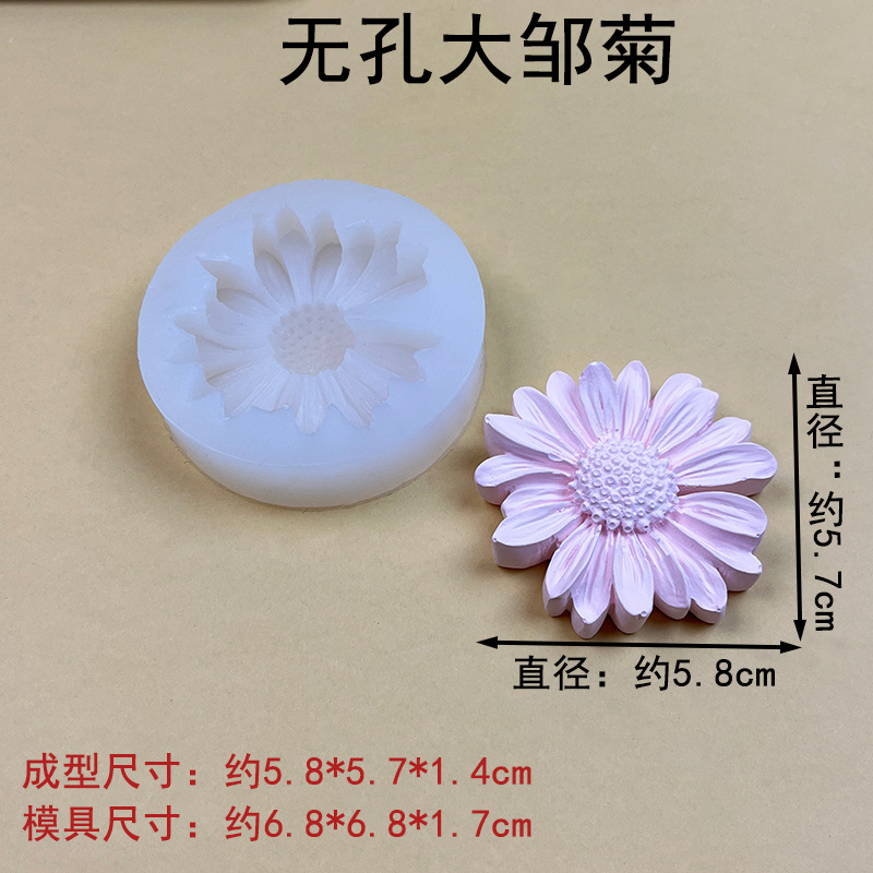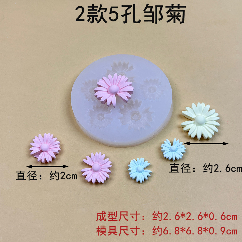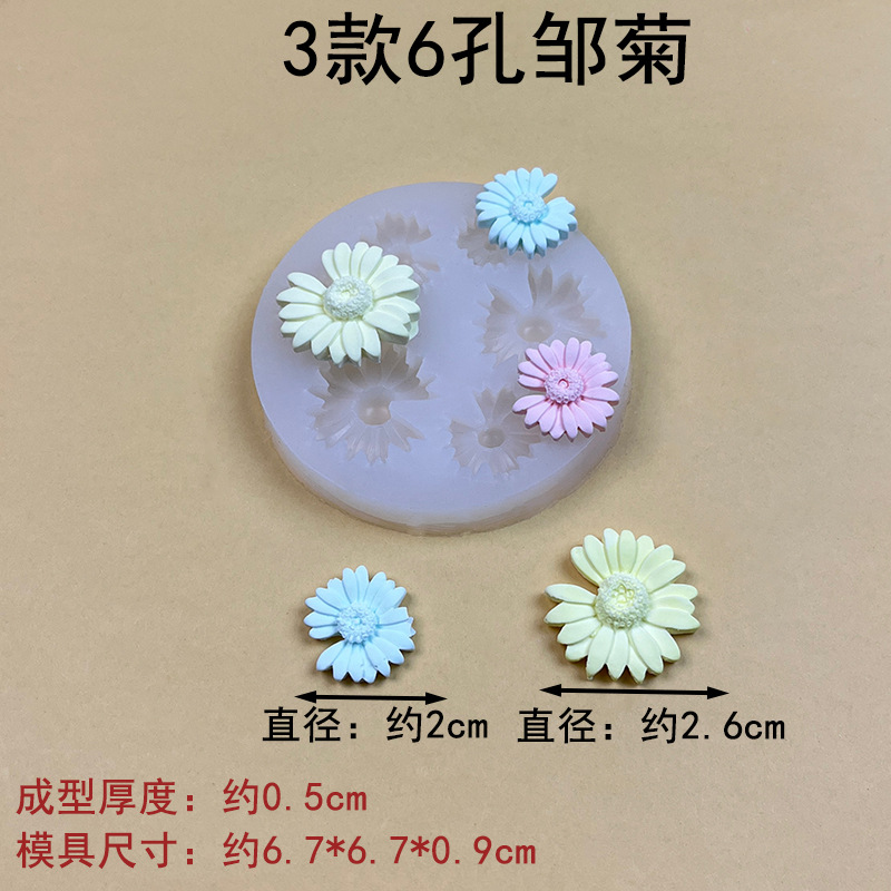总模具尺寸约:2款5孔邹菊模具:6.8*6.8*0.9cm,3款6孔邹菊:6.7*6.7*0.9cm,无孔大邹菊:6.8*6.8*1.7cm,有孔大邹菊:6*6*1.8cm,五孔奶油:4.5*4.5*1.2cm