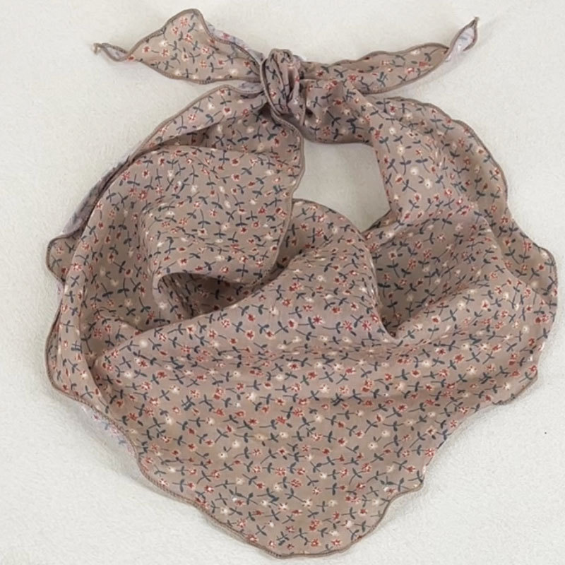 アマゾンの新型日系砕花綿麻両面三角巾百合田園風包頭巾装飾襟巾ヘアバンド
