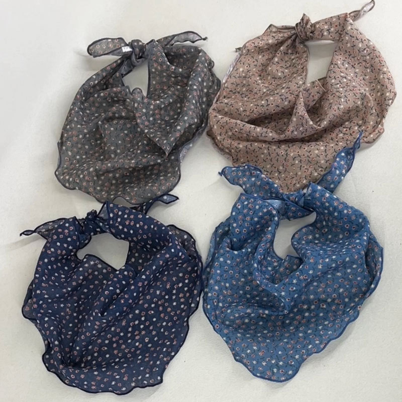 春の夏の新型韓国系の雰囲気感綿麻の三角タオルの女性の百合の高級感の優雅なスカーフの装飾の小さいスカーフ