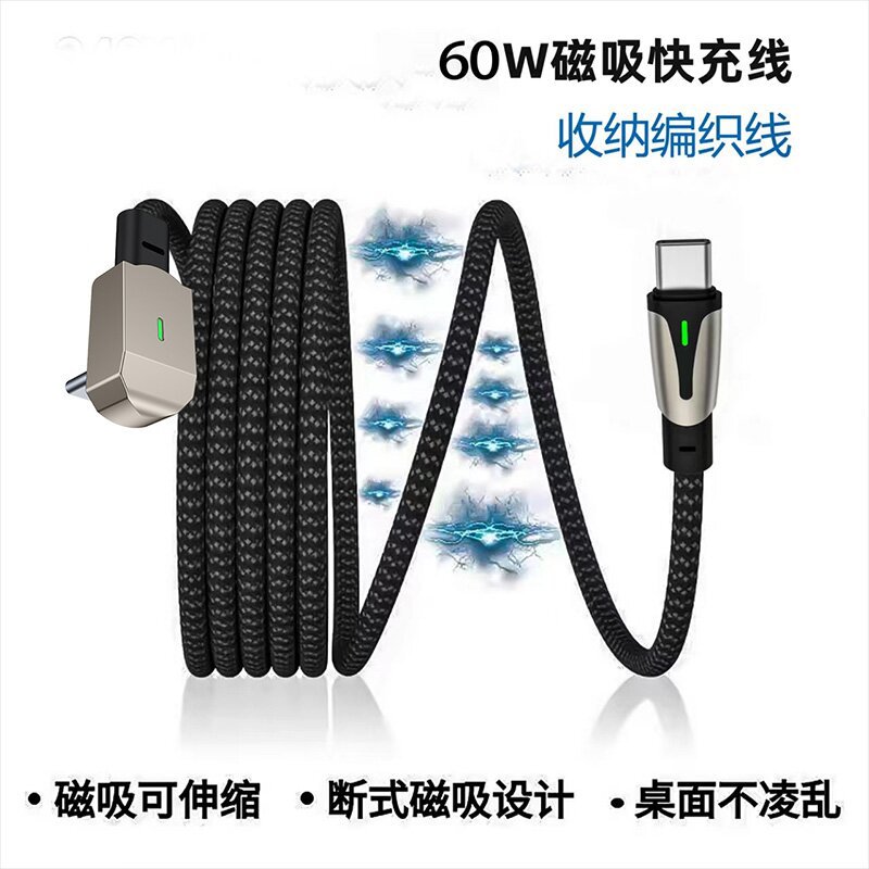 マグネット自動収納便利Type-Cデータケーブルはアップル15華為PD快充編み線を適用する