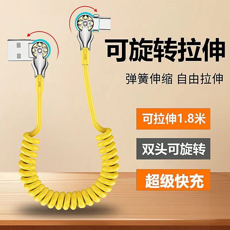 ダブルエルボ回転スプリング伸縮可能急速充電データラインは、アンドロイドリンゴの米華為vivo車載に適している