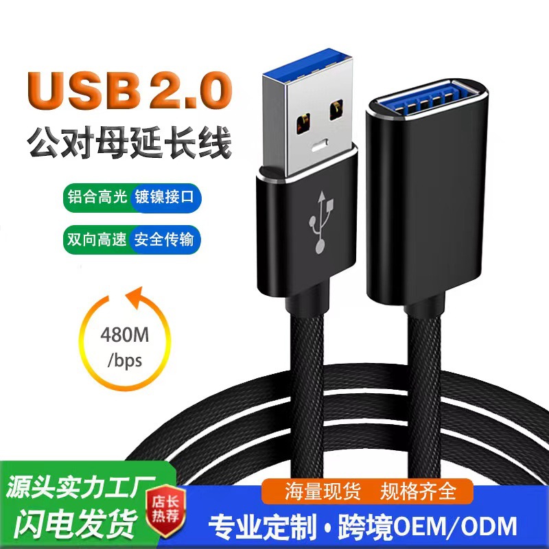 2.0公対母延長線移動ハードディスクデータ線高光充電線1メートル2メートル3メートル