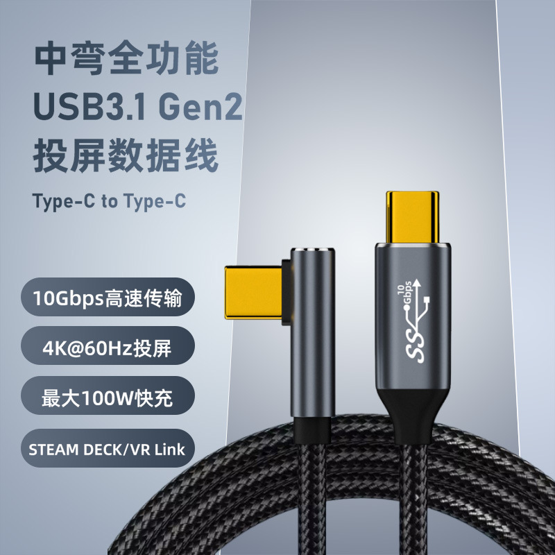 USB3.1Gen2データケーブルtypec全機能10gb左曲げ右曲げ90度エルボpd速充線100w