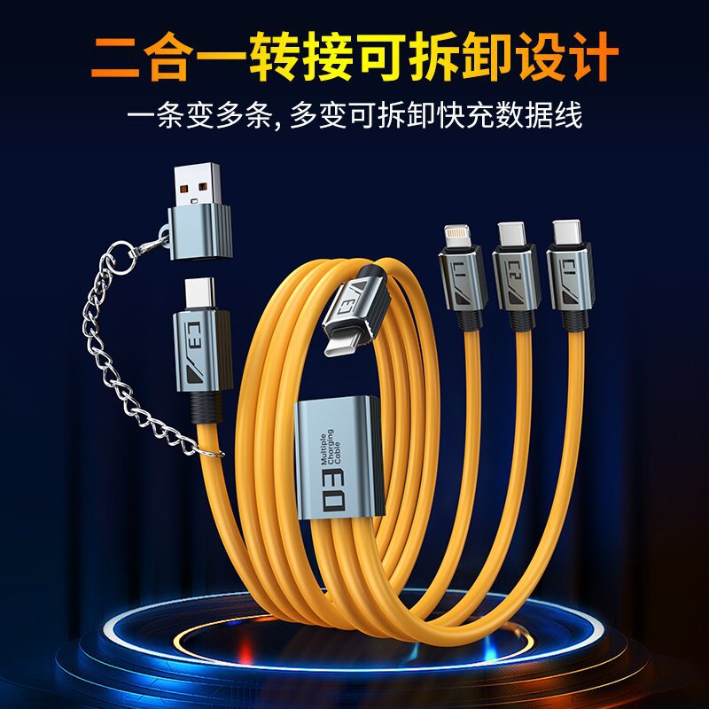 四合一自由分解一引き三超急速充電データ線線は100W急速充電60W急速充電27wを多く使う