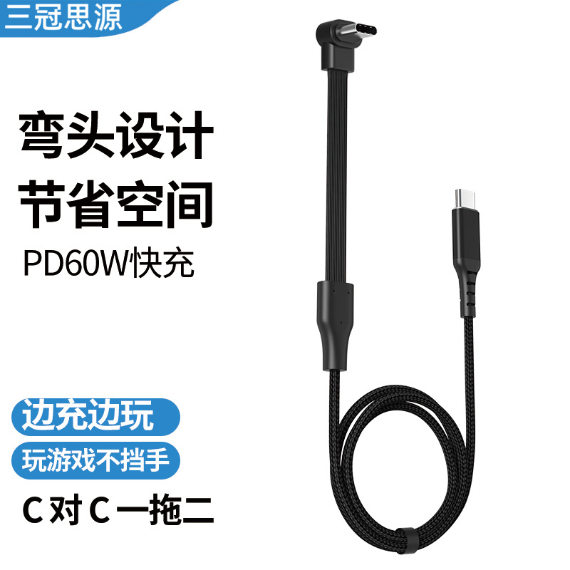 弯头type-c数据线PD 60W快充手机玩游戏不挡手90度直角C对C充电线
