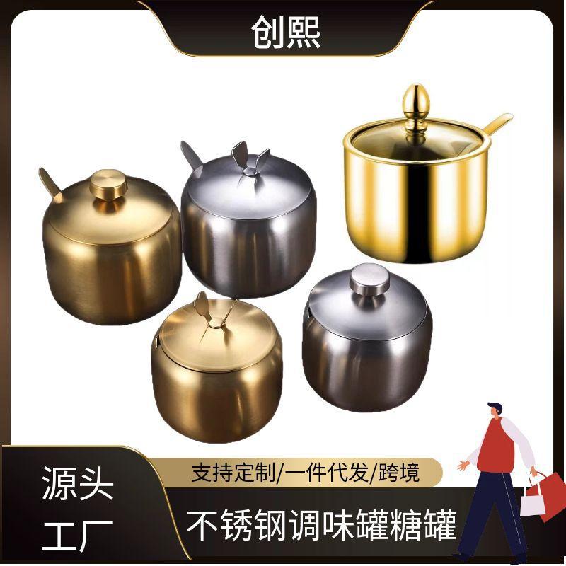 国境を越えた韓国式304ステンレス調味缶キッチンカプサイソース油塩缶スプーン付き調味料箱クリエイティブ金色缶