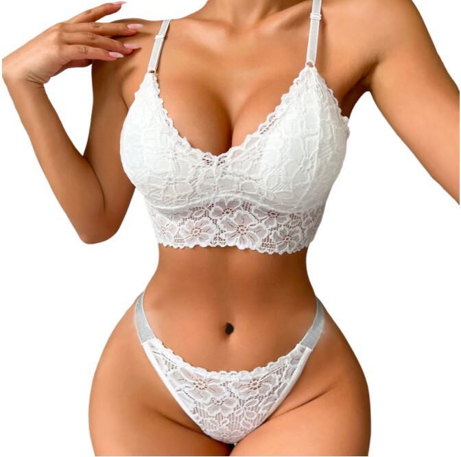 趣味の下着欧米の爆発的なセクシーなレースのストラップのレースの半ズボンの女性の居住服の2つのセットの源の卸売り