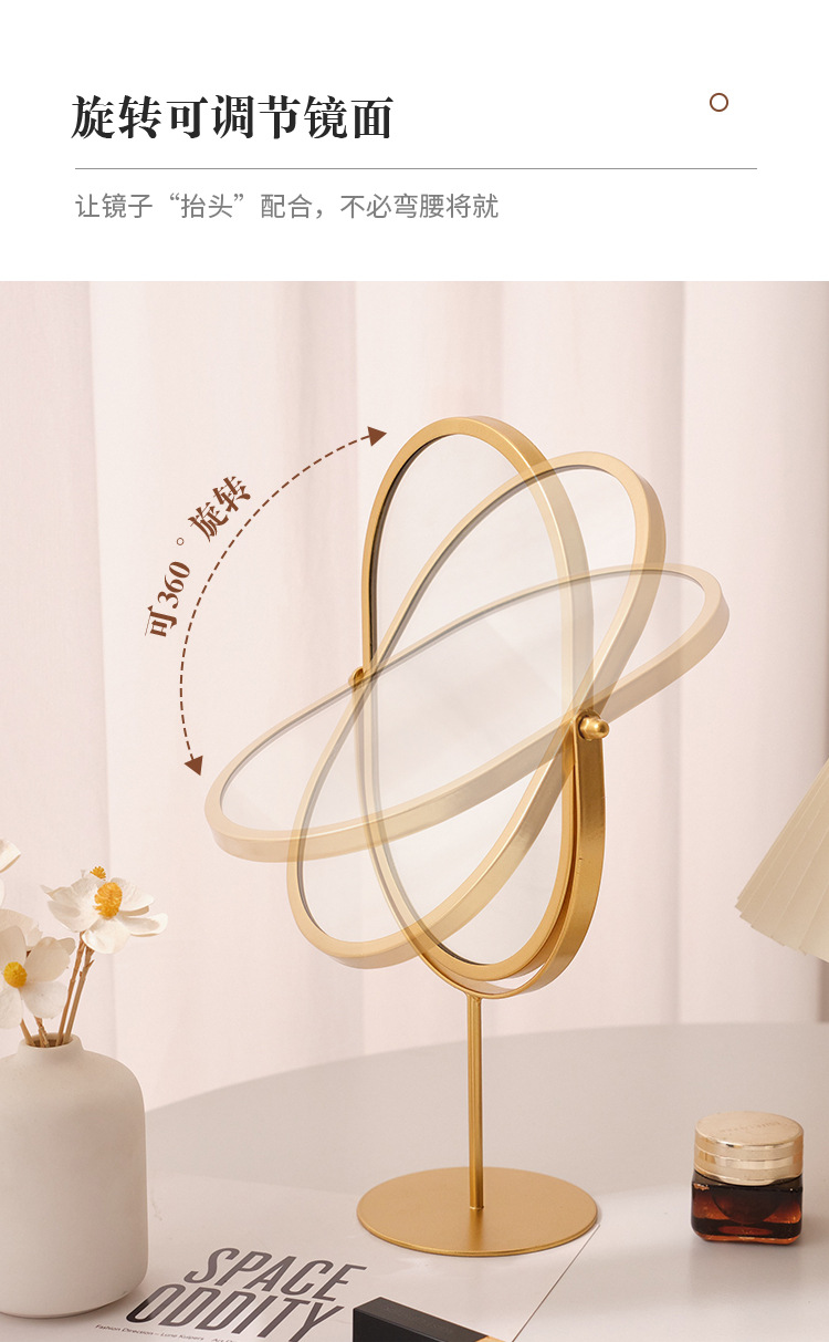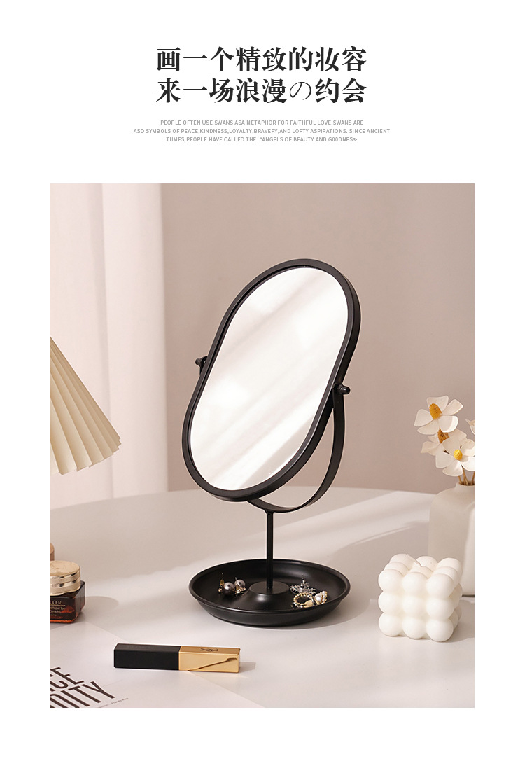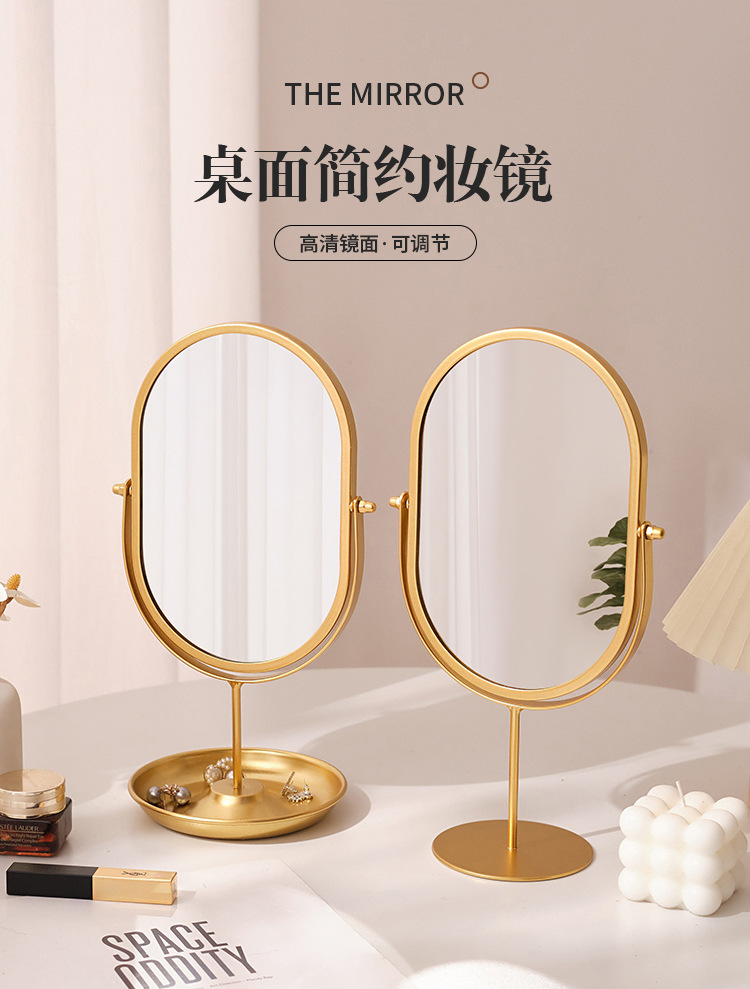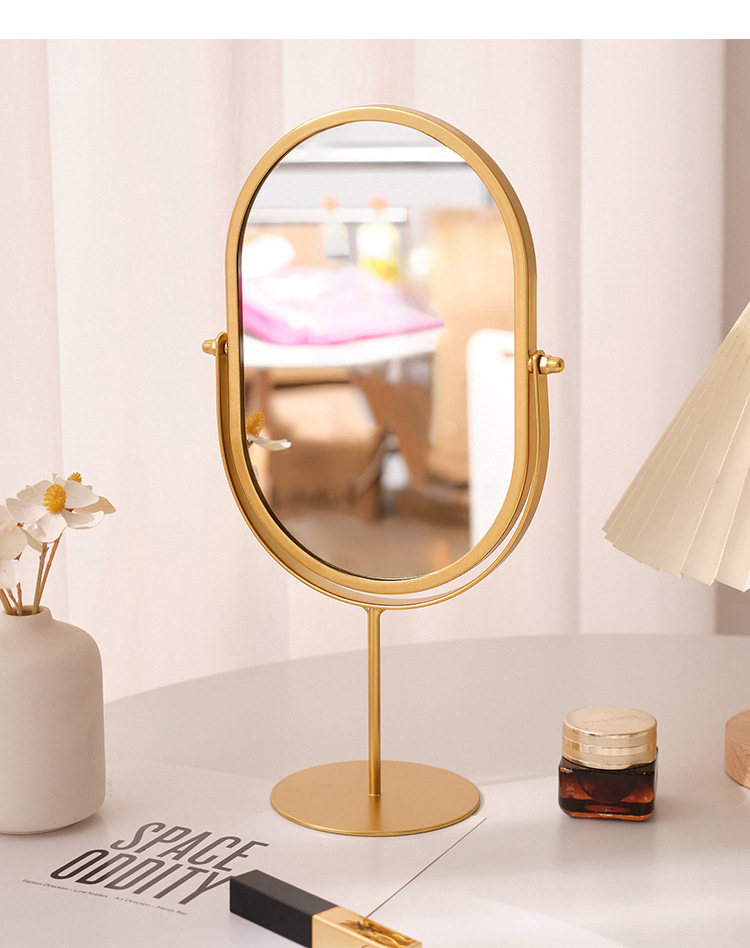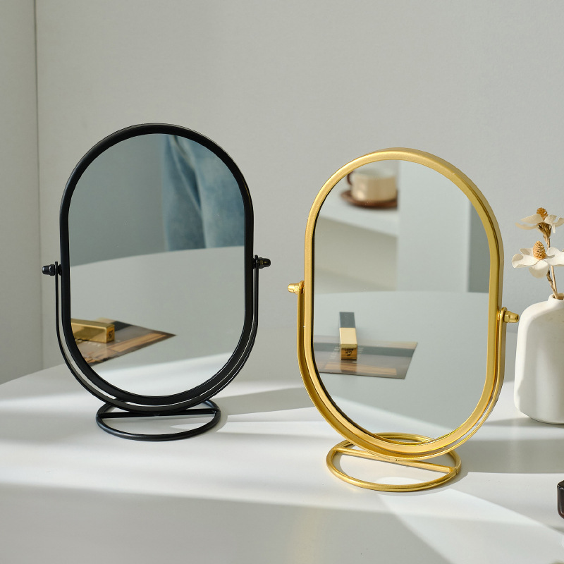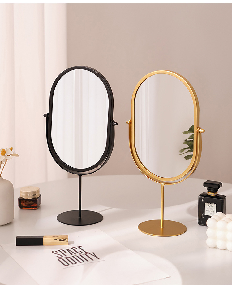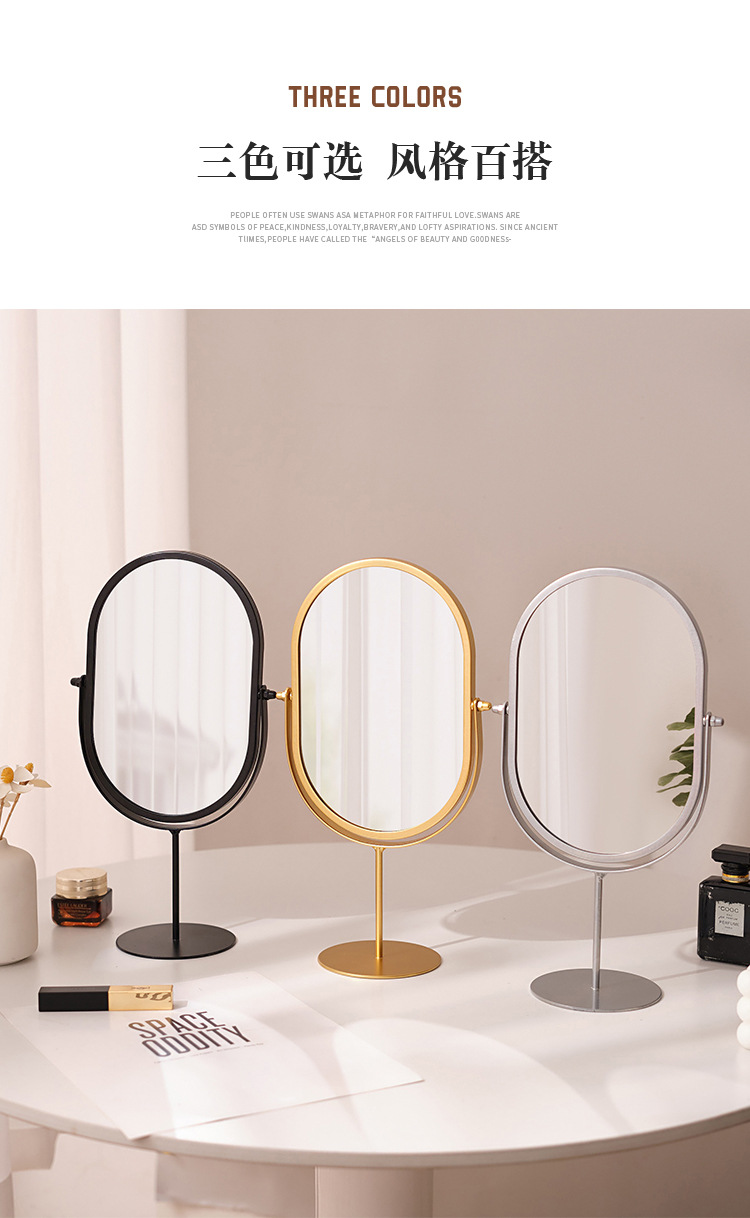 化粧鏡デスクトップデスクトップ寝室回転360楕円形鏡ins寮化粧鏡高颜値オフィス