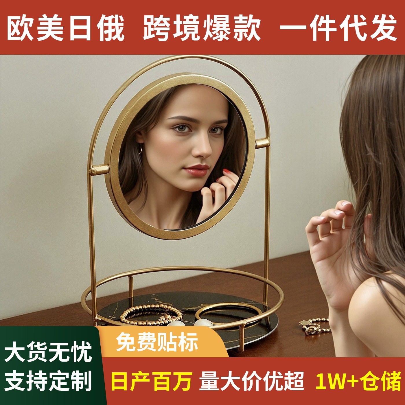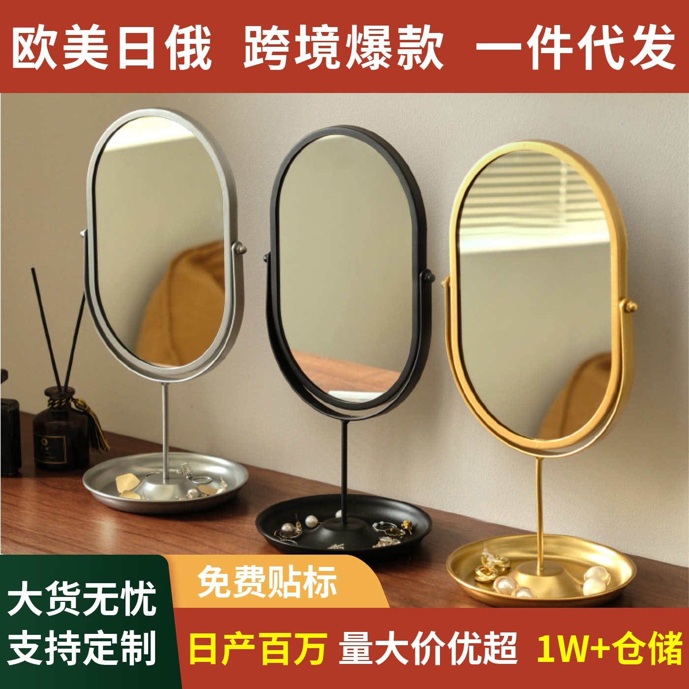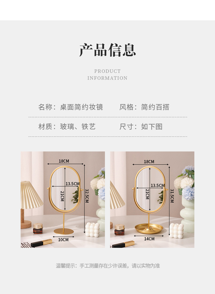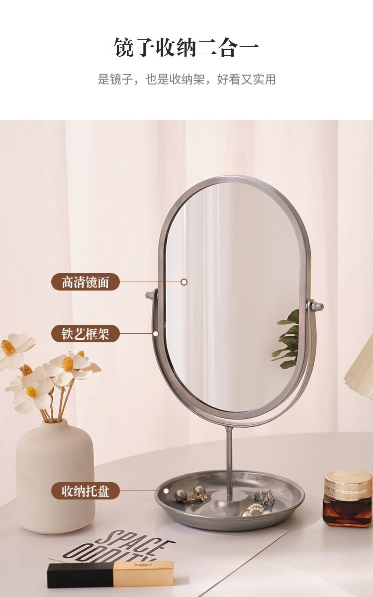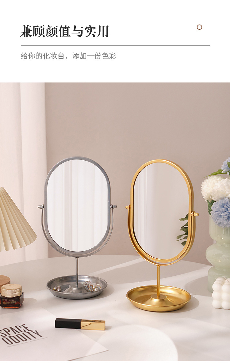 【クロスボーダー爆金】高颜値化粧鏡寮用家庭用寝室化粧鏡デスクトップネット赤楕円