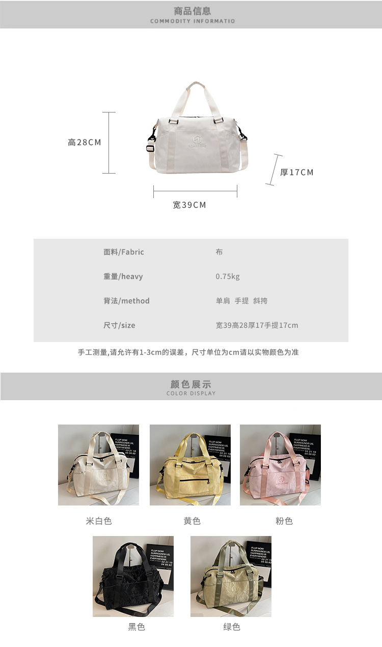 旅行カバン大容量ワンショルダー短距離手提げカバン搭乗出張収納学生宿泊服バッグ卸