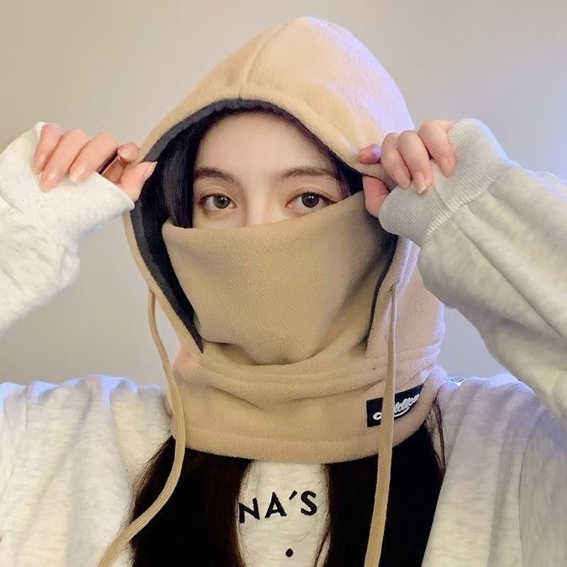 新款奥绒连体帽子保暖护颈口罩防寒防风冬季户外骑车护耳帽女加厚