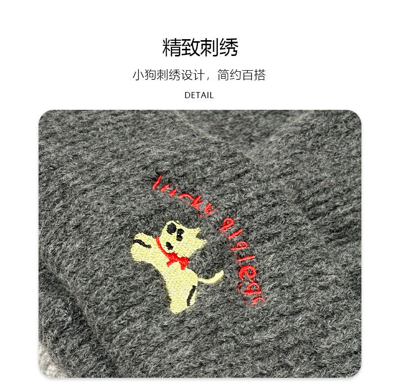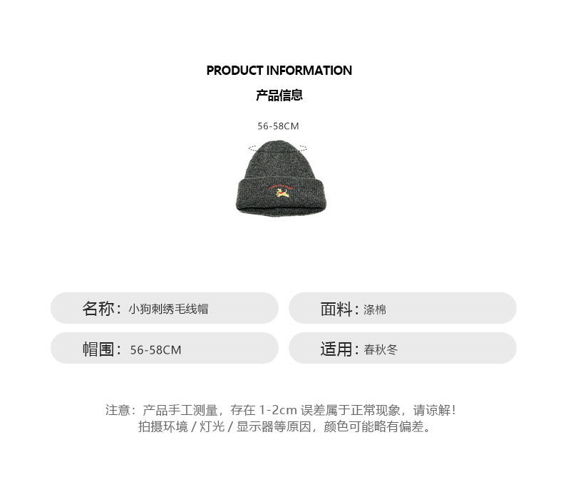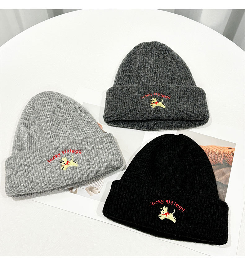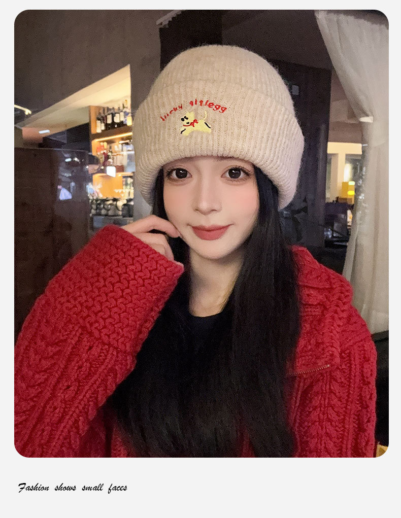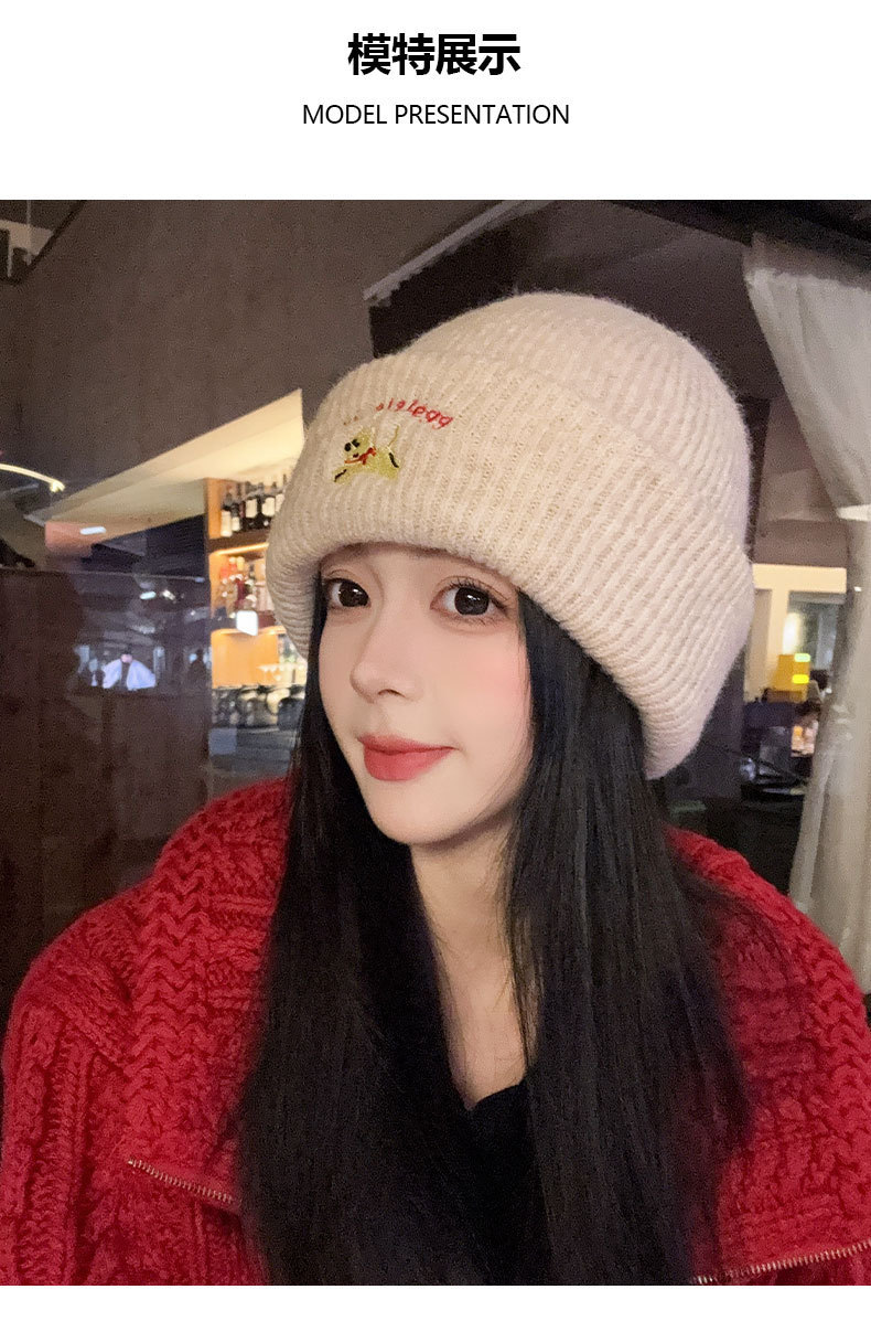 韓国版insかわいい刺繍子犬ニット毛糸帽子女性は保温秋冬の新型顔の小さな帽子を厚くしている