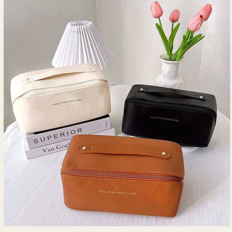 PUレザー枕型収納バッグ 大容量トラベルメイクアップバッグ ハンドヘルド洗面用具バッグ 収納ポータブルバッグ ins同型