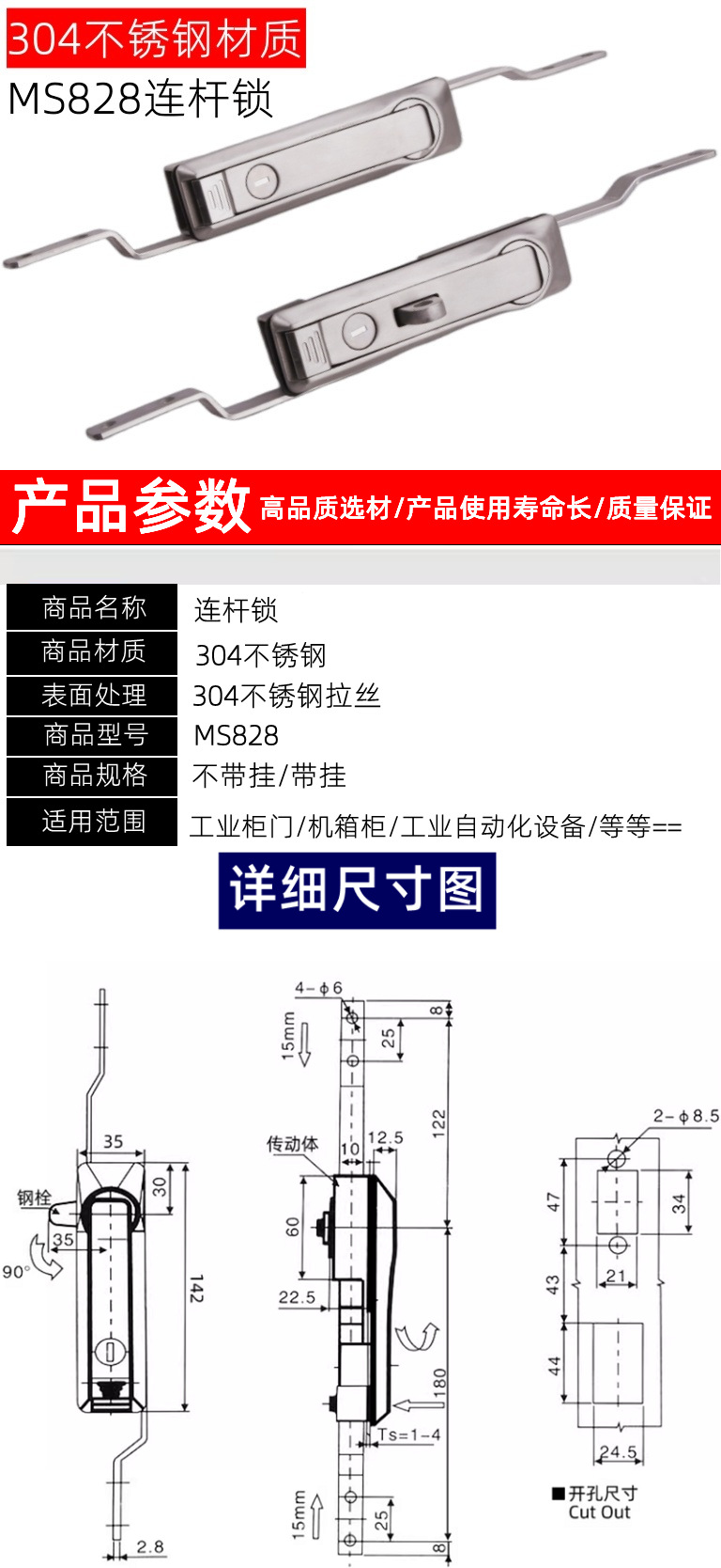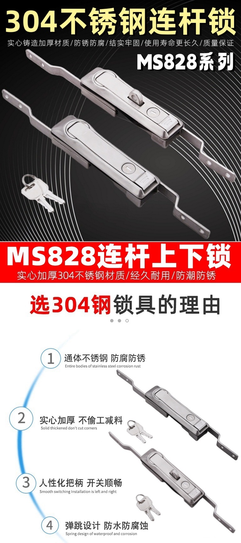 ステンレスMS828天地リンクロック威図キャビネットドアロックMS460リンクロック高圧キャビネットMS829レバーロック