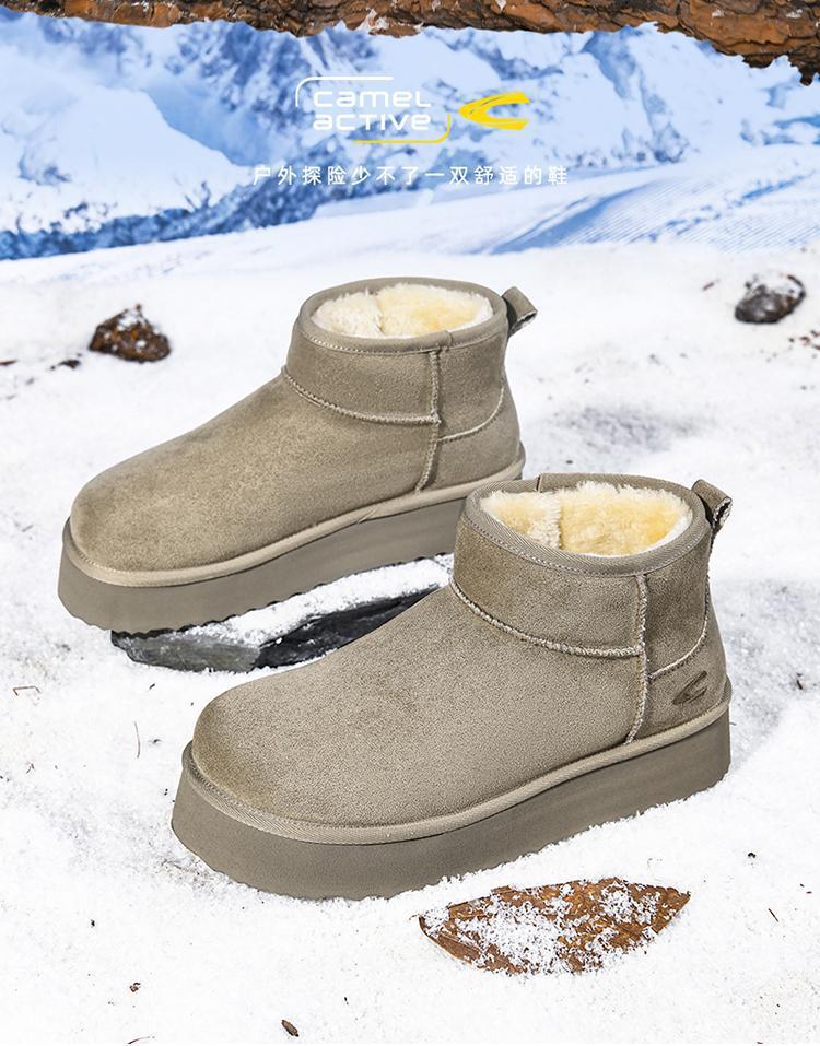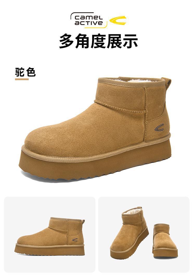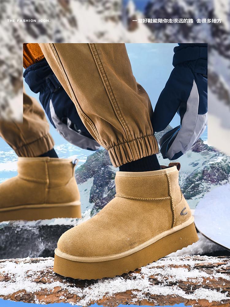ラクダのダイナミックな雪地ブーツ男性冬にベルベット防水滑り止め羊毛皮一体屋外東北防寒綿靴
