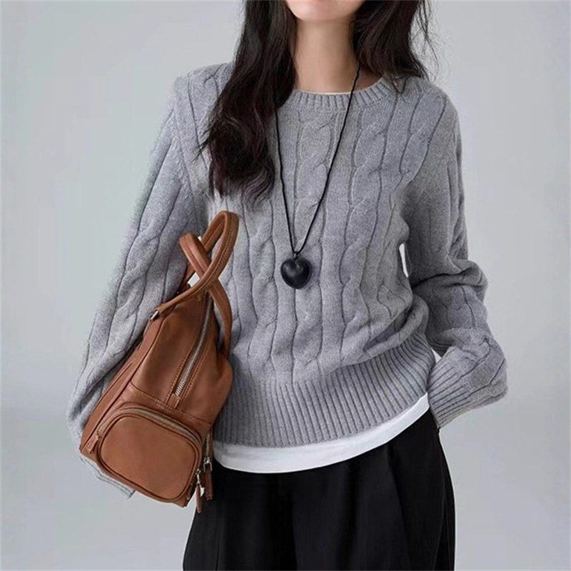 2025年冬新作 ラウンドネックセーター レディース 通勤スタイル プルオーバー 長袖ニットトップス 厚手 無地セーター