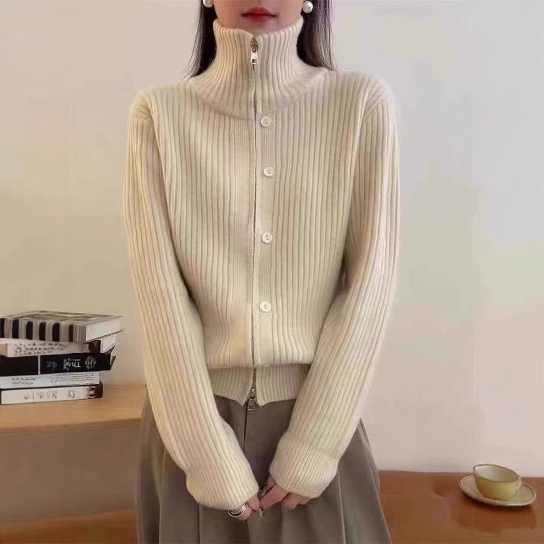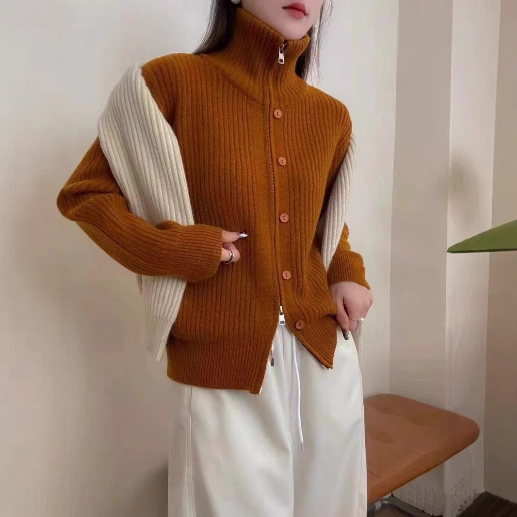 韓国のシンプルなスタンドカラージッパーニットカーディガントップス女性用 2025 秋冬新作ファッション長袖コートセーター女性用